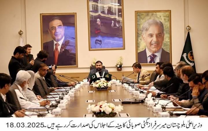 وزیر اعلیٰ بلوچستان میر سرفراز بگٹی کی زیر صدارت صوبائی کابینہ کا اہم اجلاس چیف منسٹر سیکرٹریٹ میں منعقد ہوا کابینہ نے جعفر ایکسپریس اور نوشکی میں دہشت گردی کے حالیہ واقعات کی شدید الفاظ میں مذمت کی اور ان واقعات میں بروقت اور فوری ردعمل پر سیکیورٹی فورسز کو خراج تحسین پیش کیا صوبائی کابینہ نے سیکیورٹی فورسز کی جرات مندانہ کارروائی کو سراہتے ہوئے کہا کہ بروقت اقدامات سے بلوچستان کو بڑی تباہی سے بچا لیا گیا اجلاس میں شہید ہونے والے بہادر جوانوں کو خراج عقیدت پیش کیا گیا اور ان کی مغفرت کے لیے دعا کی گئی کابینہ نے بلوچستان میں علماءکی ٹارگٹ کلنگ پر شدید تشویش کا اظہار کرتے ہوئے واضح کیا کہ بلوچستان میں امن خراب کرنے والے عناصر کا عوامی حمایت سے قلع قمع کیا جائے گا اجلاس میں چیف منسٹر یوتھ اسکلز ڈویلپمنٹ پروگرام کو بلوچستان سیلز ٹیکس سے مستثنیٰ قرار دینے کا فیصلہ کیا گیا
