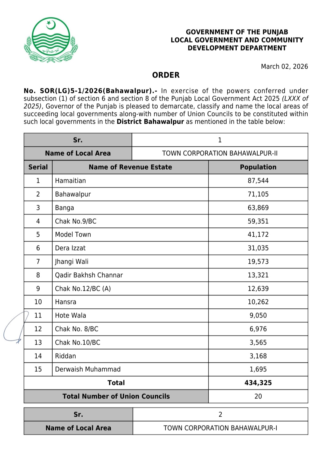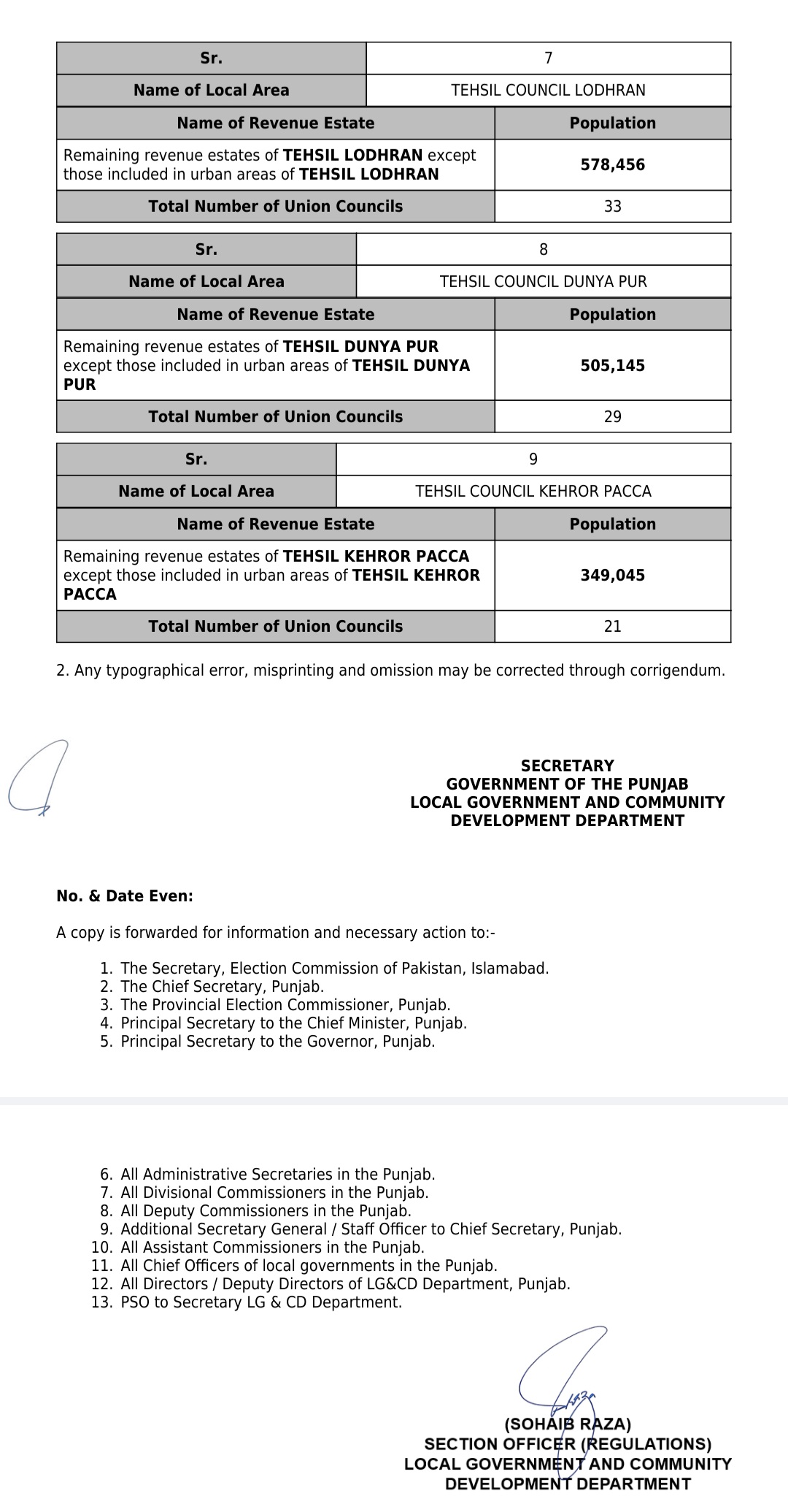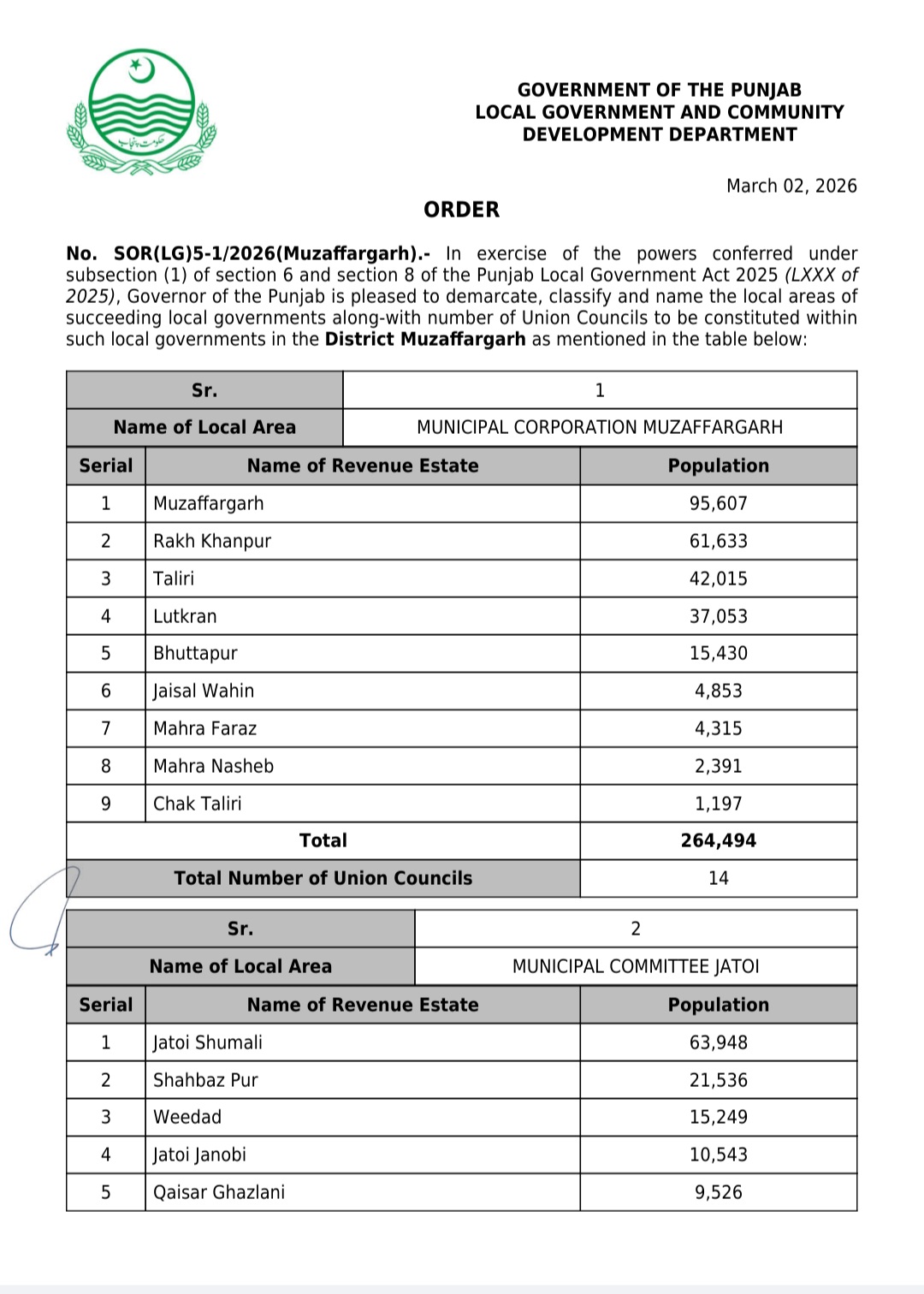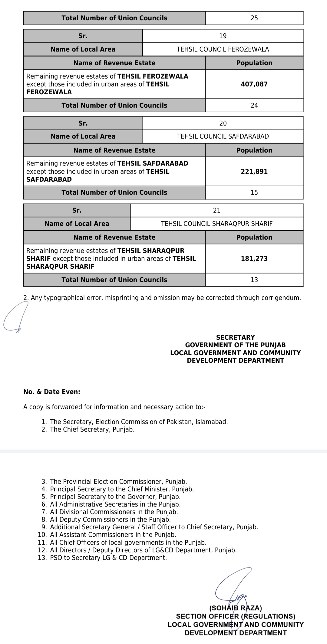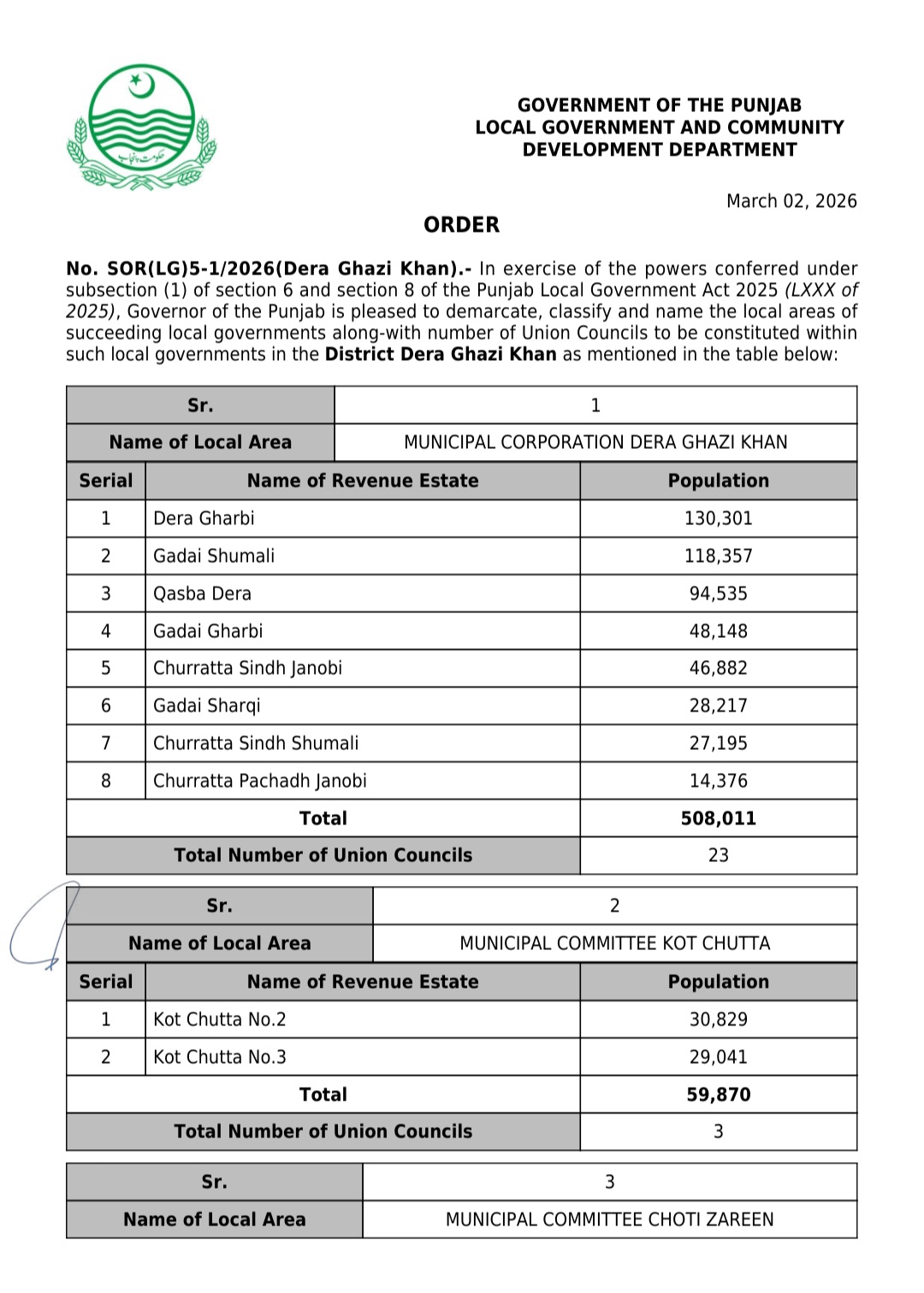 جن کی تفصیلات الیکشن کمیشن آف پاکستان کو بھی فراہم کر دی گئی ہے۔اعتراضات اور دیگر قانونی تقاضے پورے کرنے کے بعد گزٹ نوٹیفکیشن جاری کیا جائے گا۔جس کے بعد نئے بلدیاتی اداروں کی باقاعدہ تشکیل، اختیارات و اثاثہ جات کی منتقلی اور انھیں فعال بنانے کا عمل شروع کیا جائے گا۔پنجاب میں نئے بلدیاتی اداروں کی تعداد میں ریکارڈ اضافہ کیا گیا ہے۔
