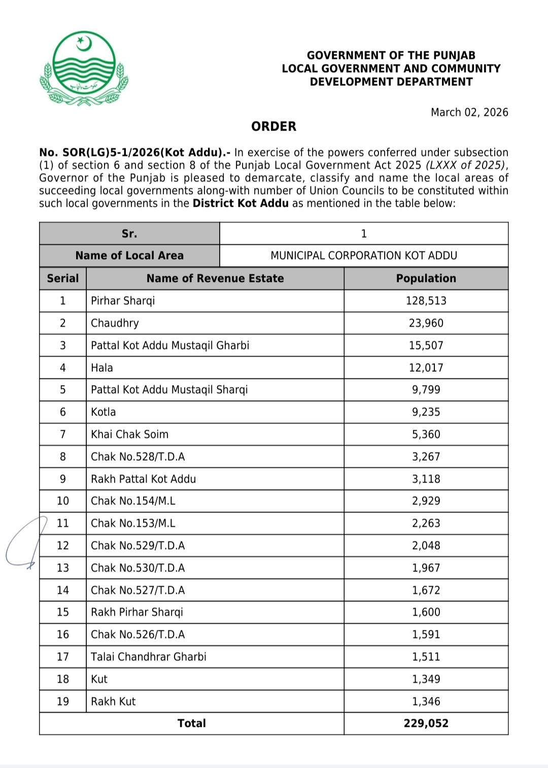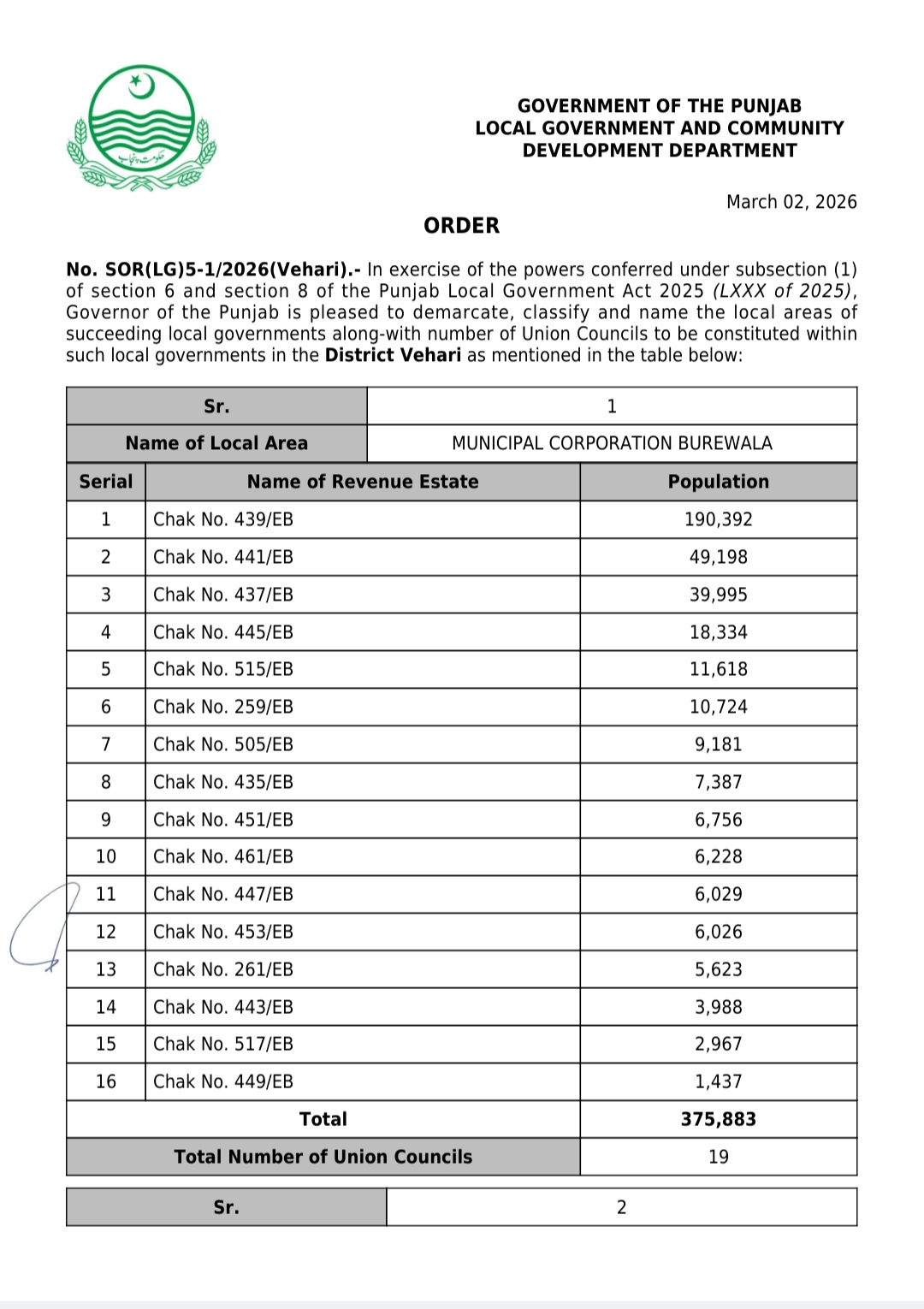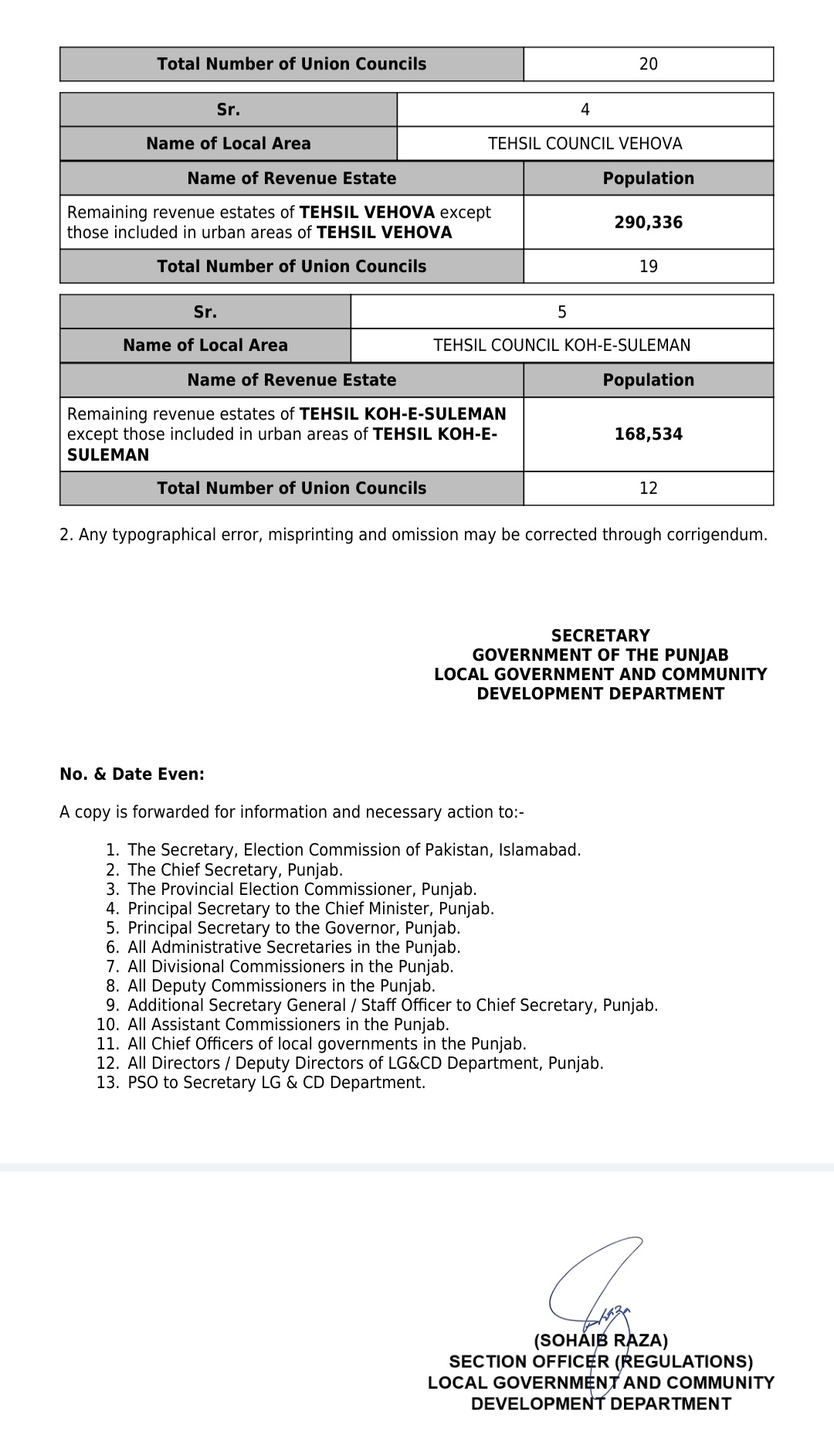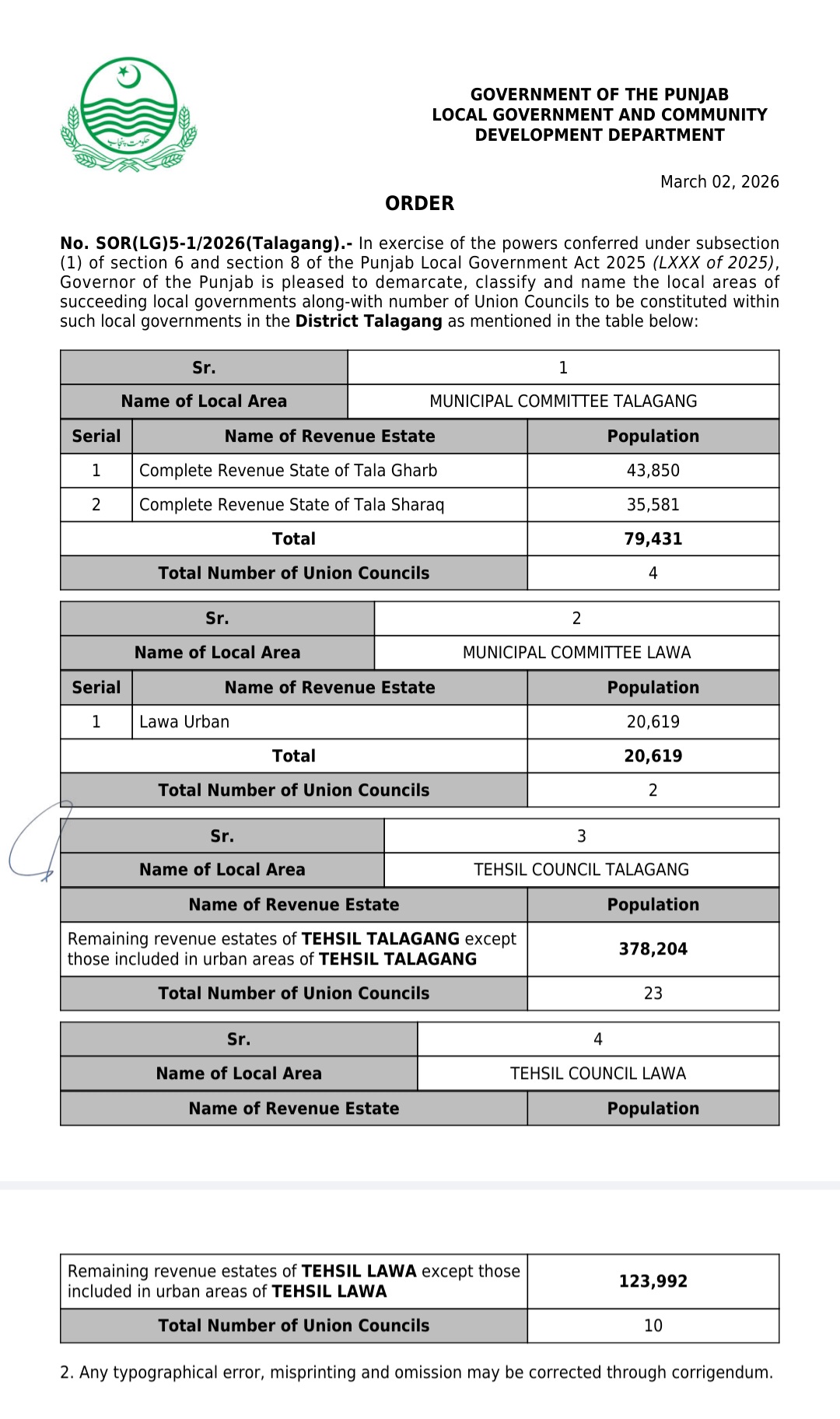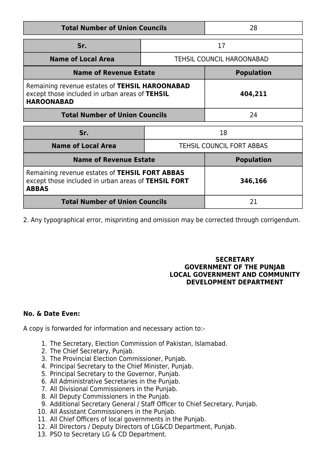 جن کی تفصیلات الیکشن کمیشن آف پاکستان کو بھی فراہم کر دی گئی ہے۔اعتراضات اور دیگر قانونی تقاضے پورے کرنے کے بعد گزٹ نوٹیفکیشن جاری کیا جائے گا۔جس کے بعد نئے بلدیاتی اداروں کی باقاعدہ تشکیل، اختیارات و اثاثہ جات کی منتقلی اور انھیں فعال بنانے کا عمل شروع کیا جائے گا۔پنجاب میں نئے بلدیاتی اداروں کی تعداد میں ریکارڈ اضافہ کیا گیا ہے۔