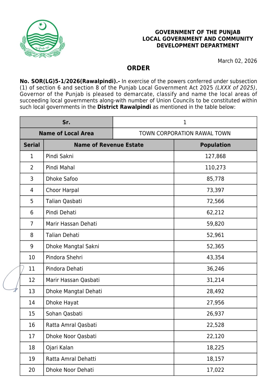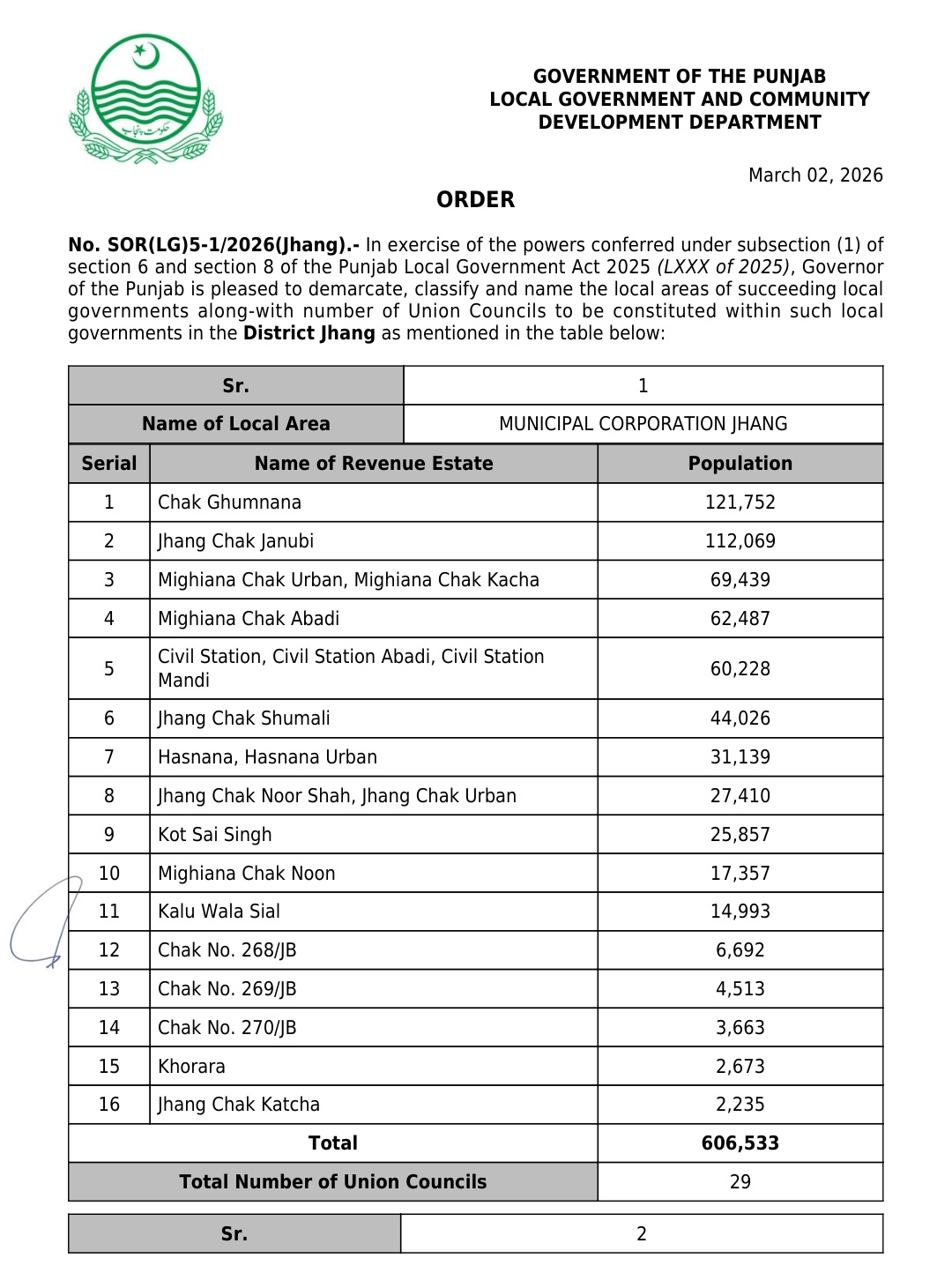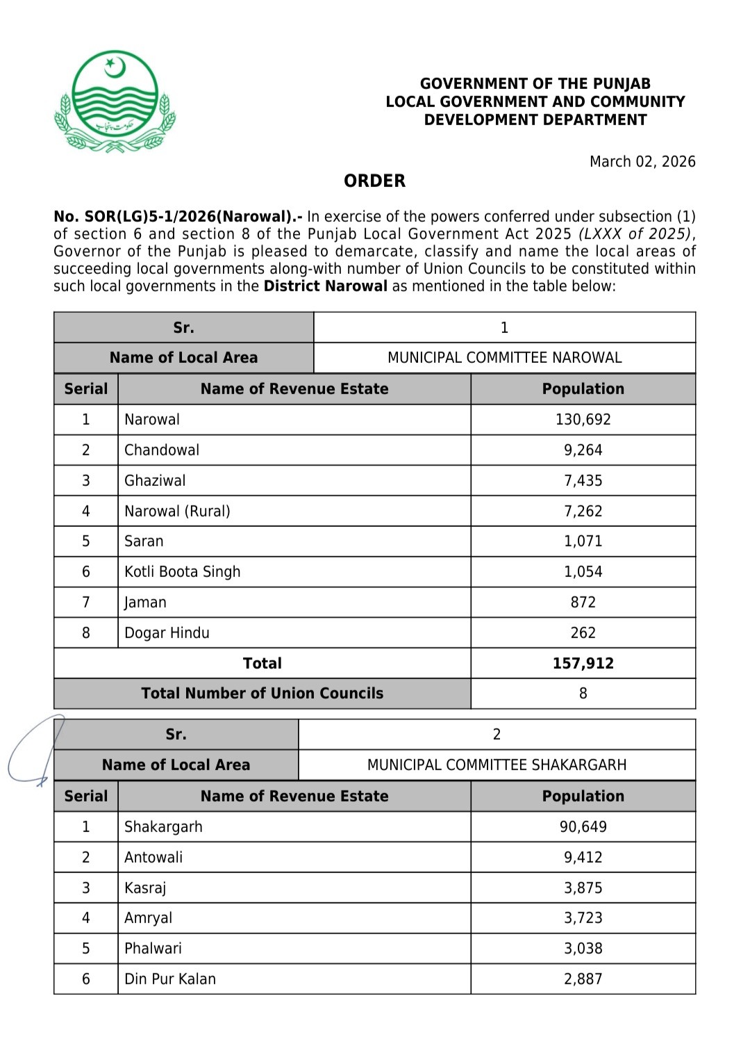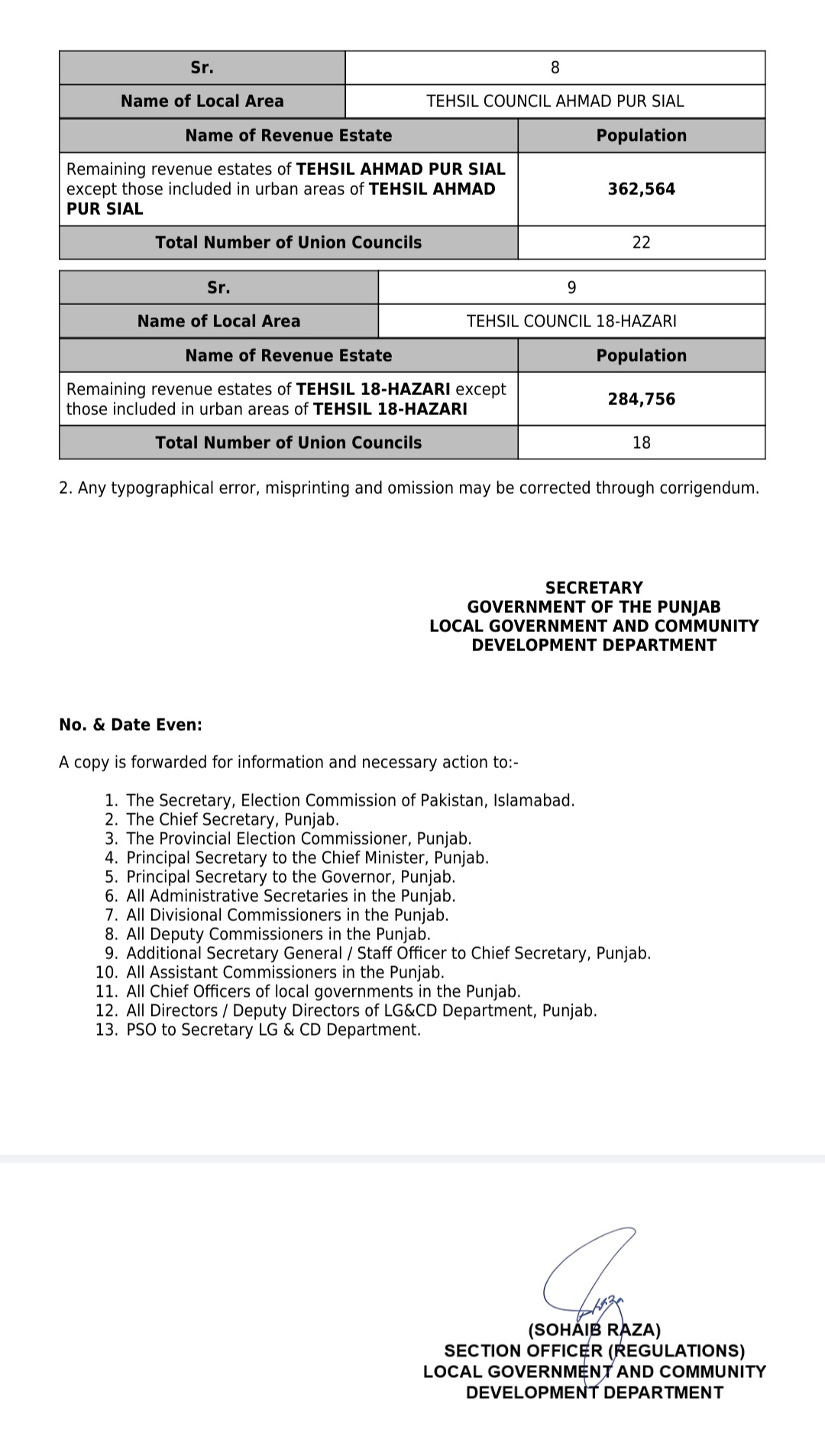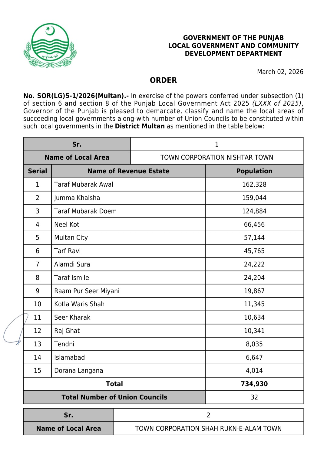 جن کی تفصیلات الیکشن کمیشن آف پاکستان کو بھی فراہم کر دی گئی ہے۔اعتراضات اور دیگر قانونی تقاضے پورے کرنے کے بعد گزٹ نوٹیفکیشن جاری کیا جائے گا۔جس کے بعد نئے بلدیاتی اداروں کی باقاعدہ تشکیل، اختیارات و اثاثہ جات کی منتقلی اور انھیں فعال بنانے کا عمل شروع کیا جائے گا۔پنجاب میں نئے بلدیاتی اداروں کی تعداد میں ریکارڈ اضافہ کیا گیا ہے۔