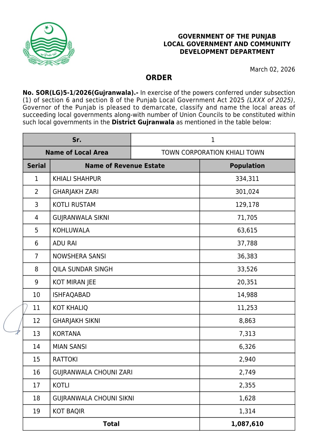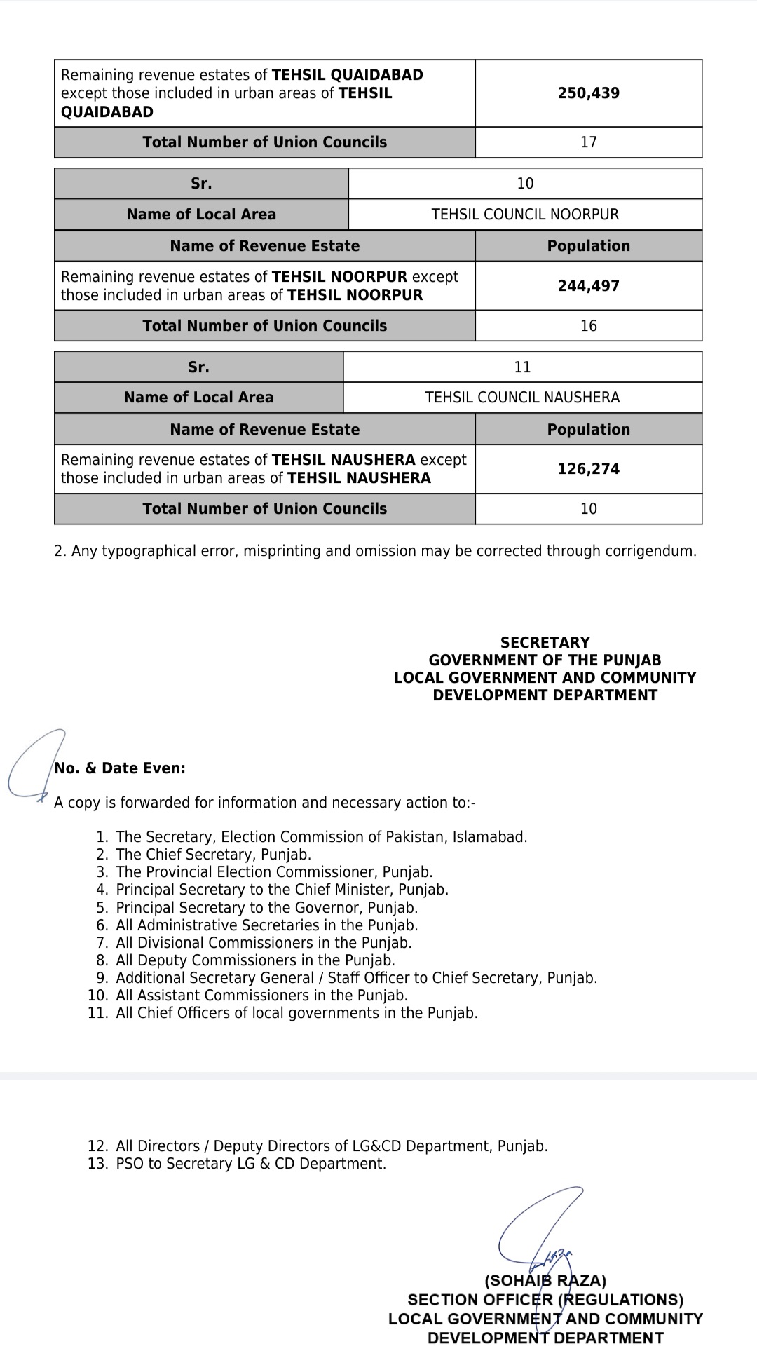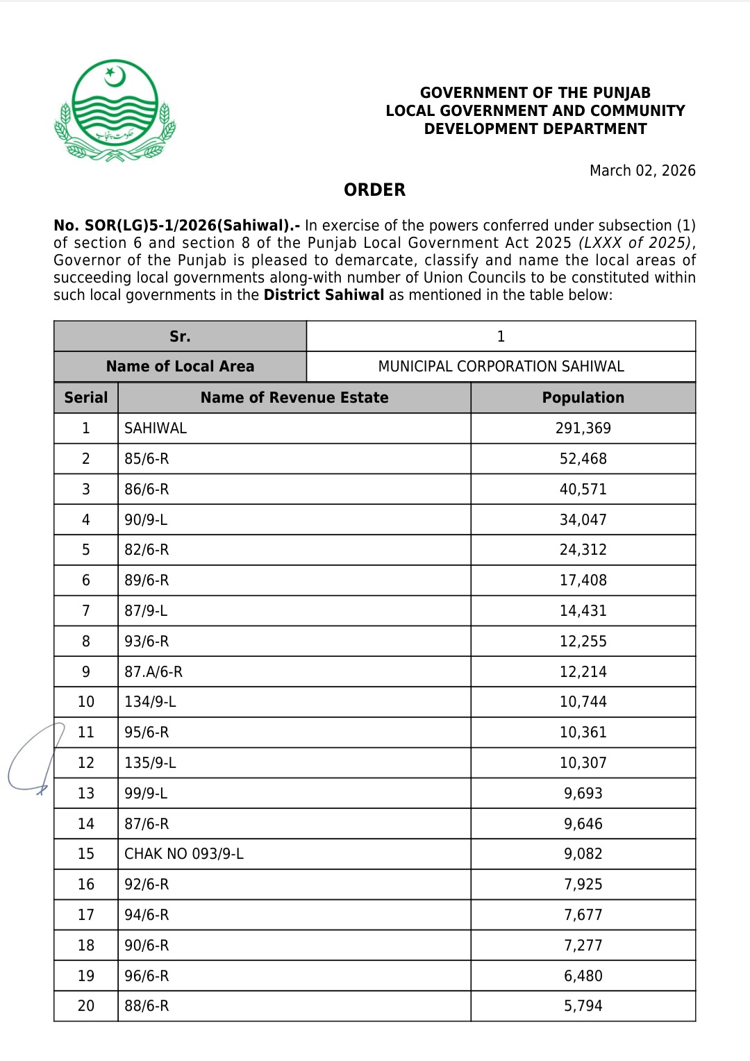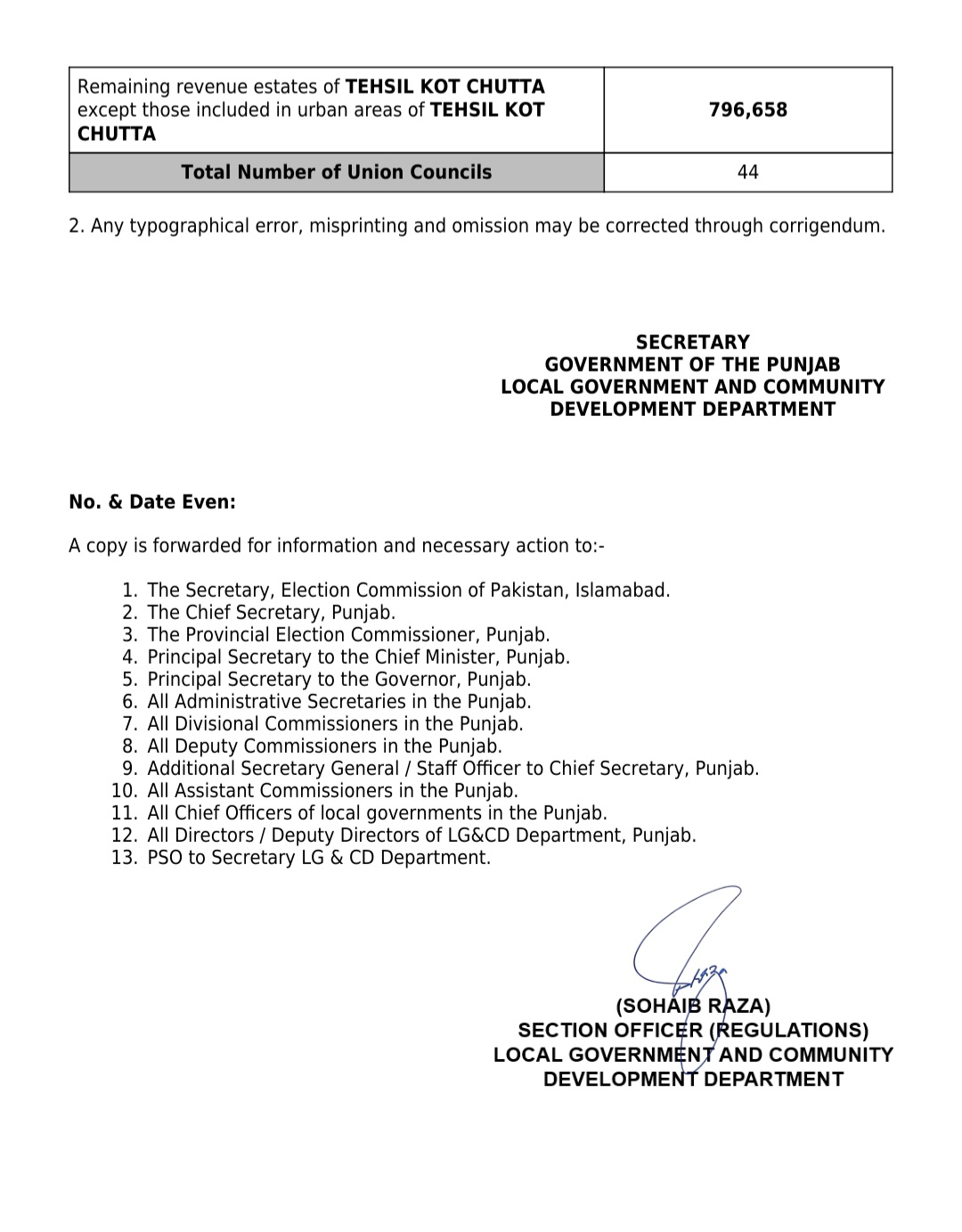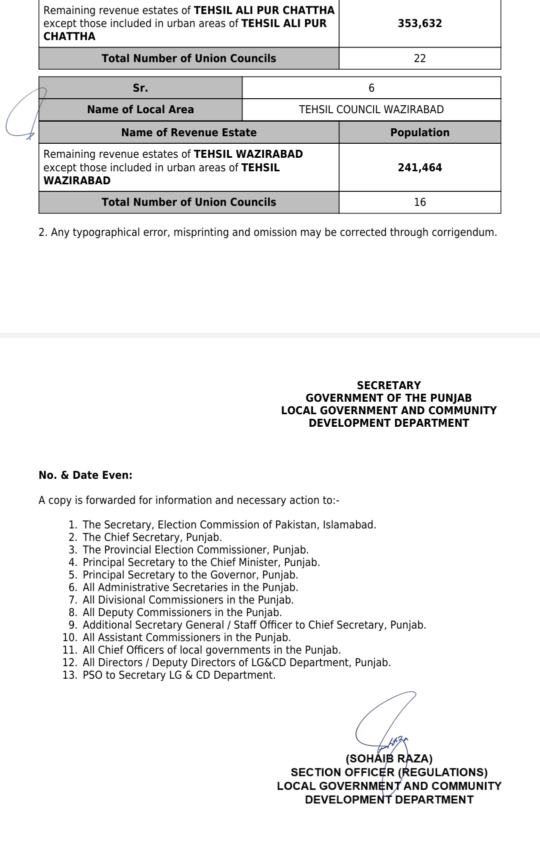جن کی تفصیلات الیکشن کمیشن آف پاکستان کو بھی فراہم کر دی گئی ہے۔اعتراضات اور دیگر قانونی تقاضے پورے کرنے کے بعد گزٹ نوٹیفکیشن جاری کیا جائے گا۔جس کے بعد نئے بلدیاتی اداروں کی باقاعدہ تشکیل، اختیارات و اثاثہ جات کی منتقلی اور انھیں فعال بنانے کا عمل شروع کیا جائے گا۔پنجاب میں نئے بلدیاتی اداروں کی تعداد میں ریکارڈ اضافہ کیا گیا ہے۔