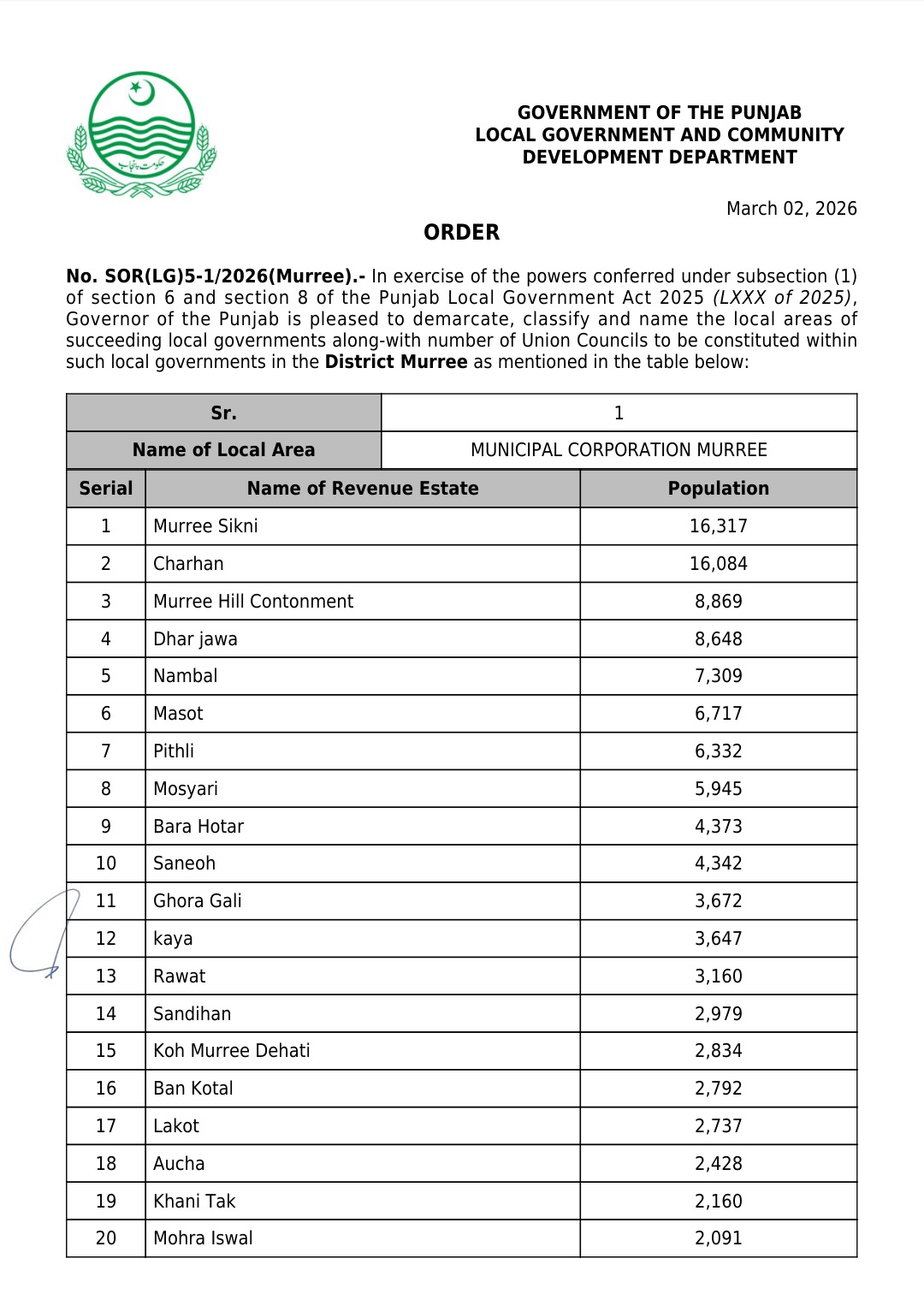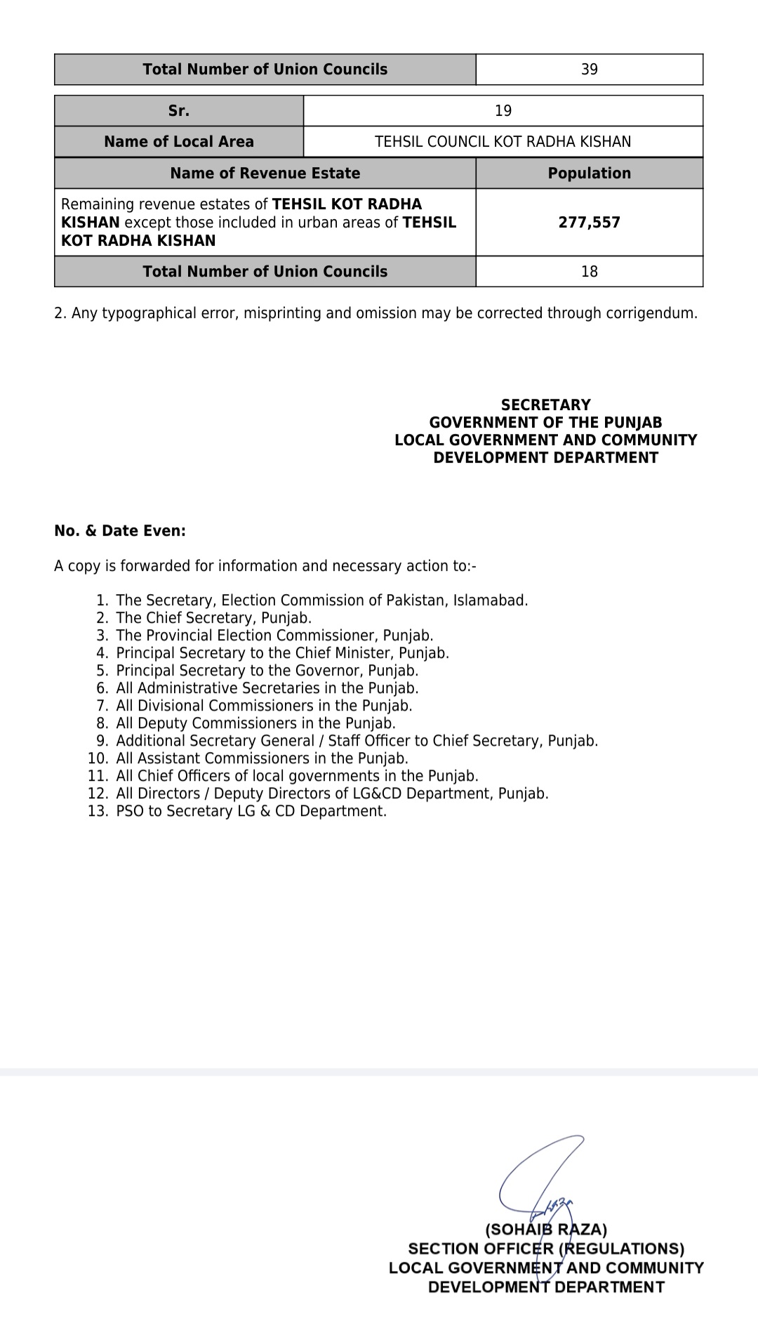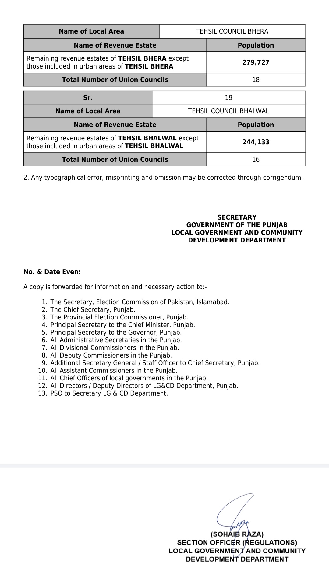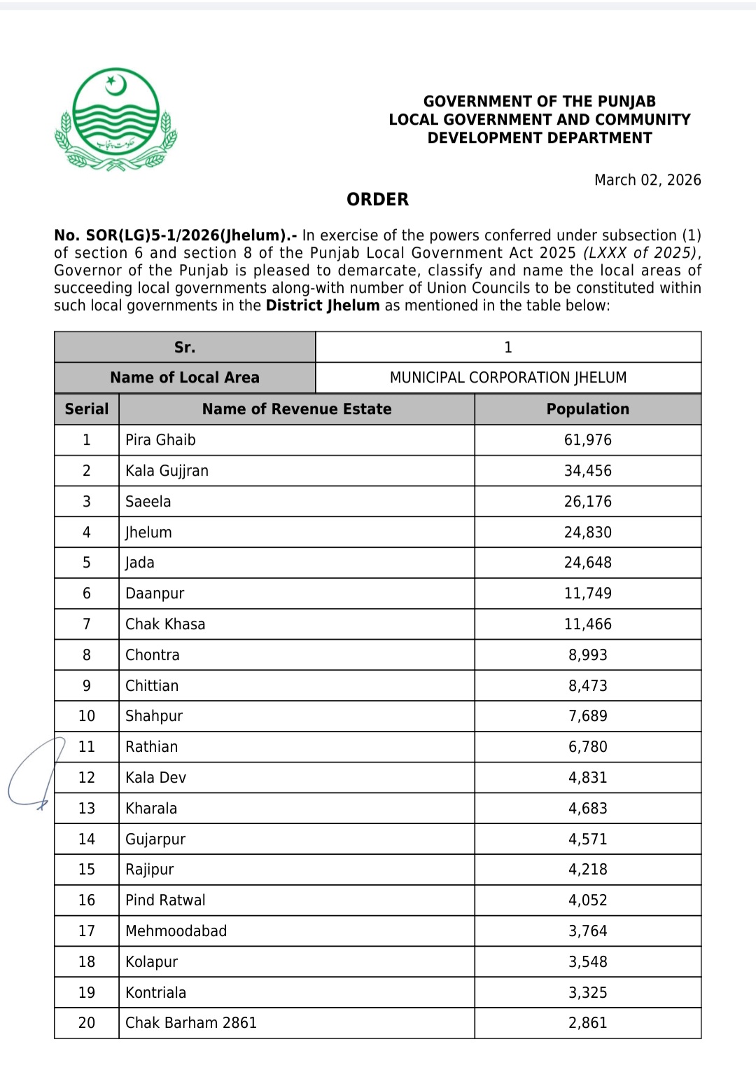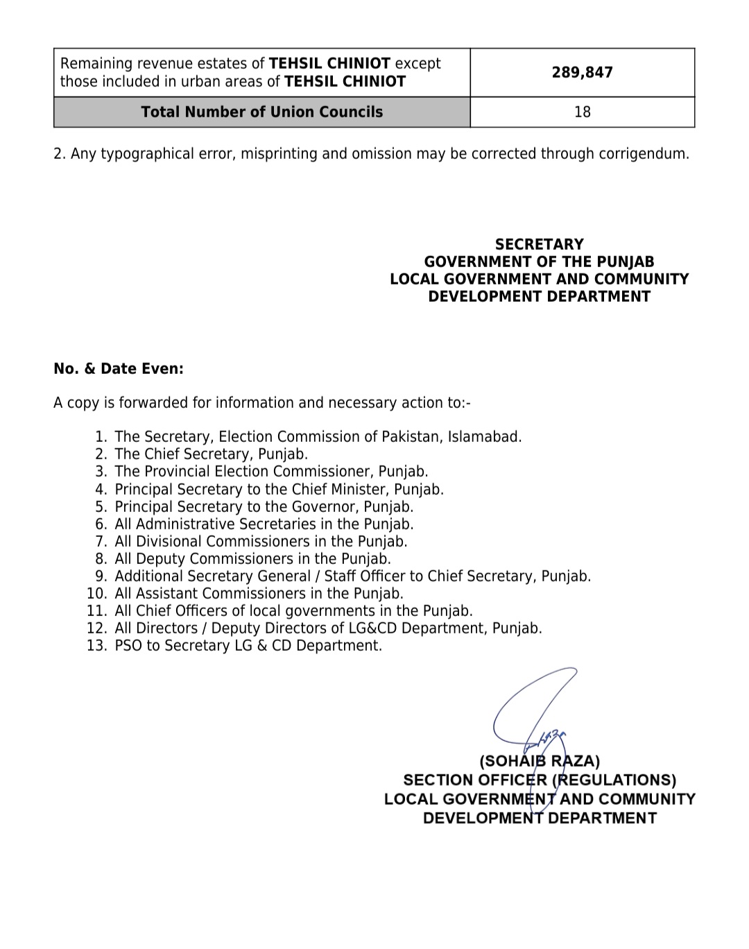 جن کی تفصیلات الیکشن کمیشن آف پاکستان کو بھی فراہم کر دی گئی ہے۔اعتراضات اور دیگر قانونی تقاضے پورے کرنے کے بعد گزٹ نوٹیفکیشن جاری کیا جائے گا۔جس کے بعد نئے بلدیاتی اداروں کی باقاعدہ تشکیل، اختیارات و اثاثہ جات کی منتقلی اور انھیں فعال بنانے کا عمل شروع کیا جائے گا۔پنجاب میں نئے بلدیاتی اداروں کی تعداد میں ریکارڈ اضافہ کیا گیا ہے۔