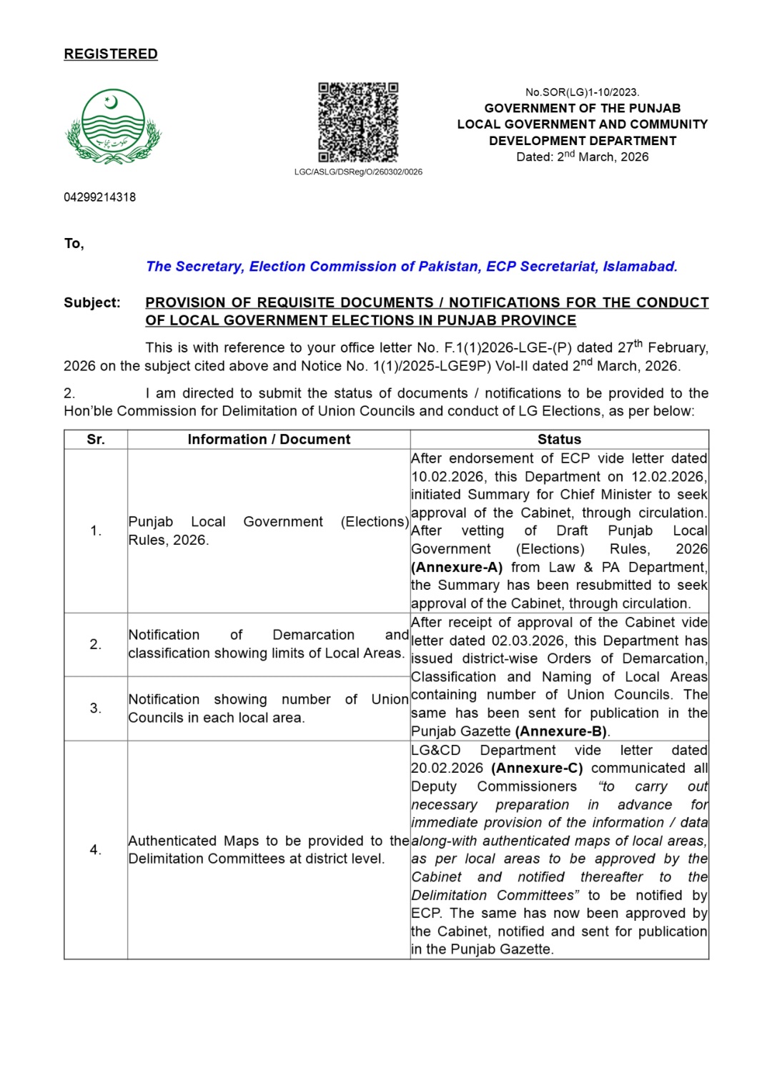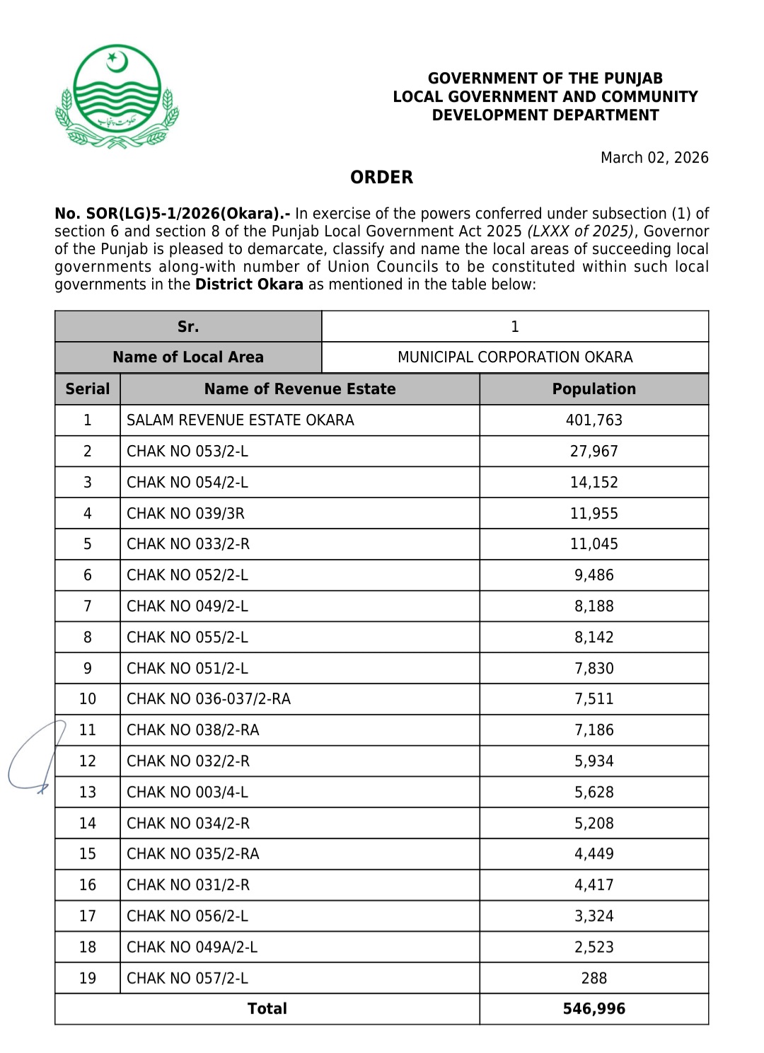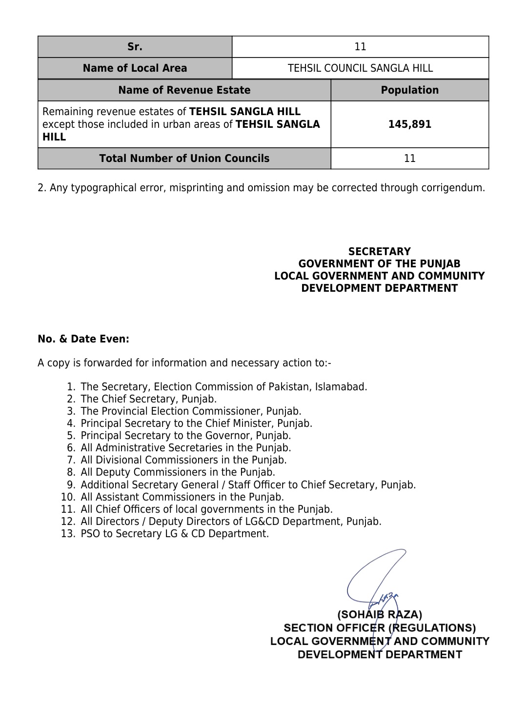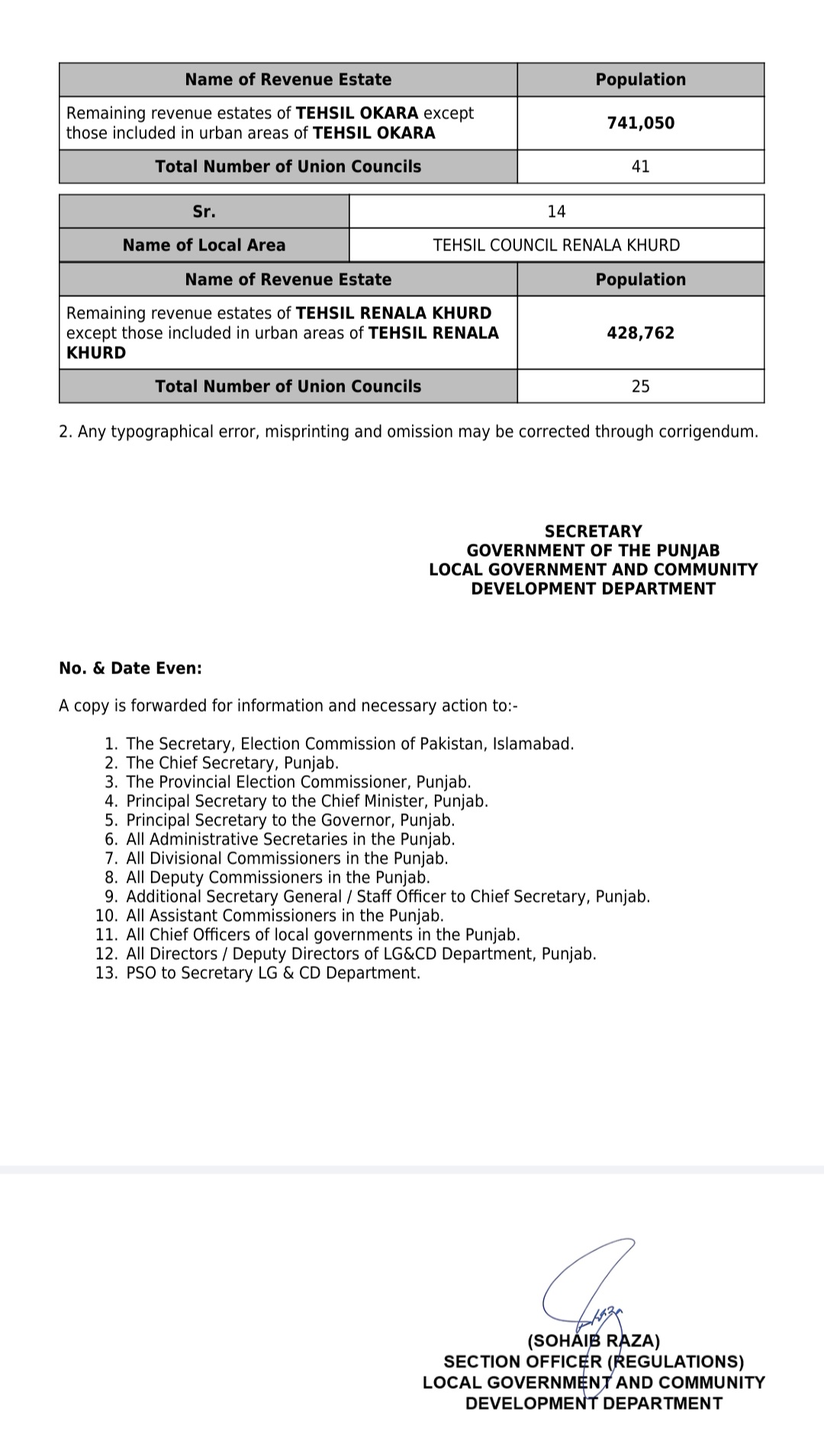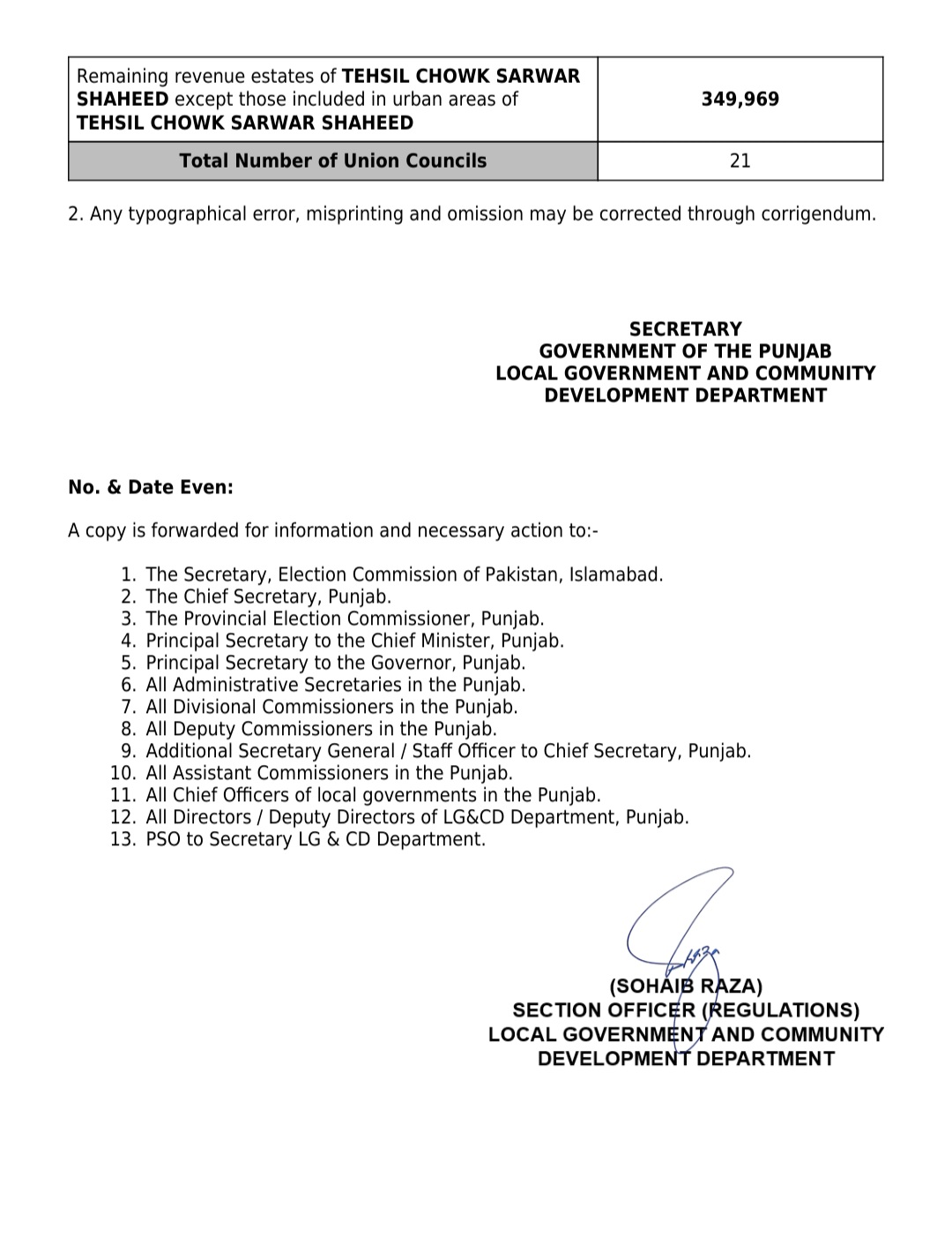 جن کی تفصیلات الیکشن کمیشن آف پاکستان کو بھی فراہم کر دی گئی ہے۔اعتراضات اور دیگر قانونی تقاضے پورے کرنے کے بعد گزٹ نوٹیفکیشن جاری کیا جائے گا۔جس کے بعد نئے بلدیاتی اداروں کی باقاعدہ تشکیل، اختیارات و اثاثہ جات کی منتقلی اور انھیں فعال بنانے کا عمل شروع کیا جائے گا۔پنجاب میں نئے بلدیاتی اداروں کی تعداد میں ریکارڈ اضافہ کیا گیا ہے۔