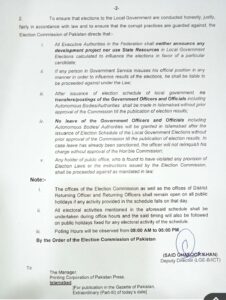 جس کے تحت اب پولنگ میٹروپولیٹن کارپوریشن اسلام آباد بلدیاتی انتخابات کے لئے پولنگ 9اکتوبر 2024 کو ہوگی۔
