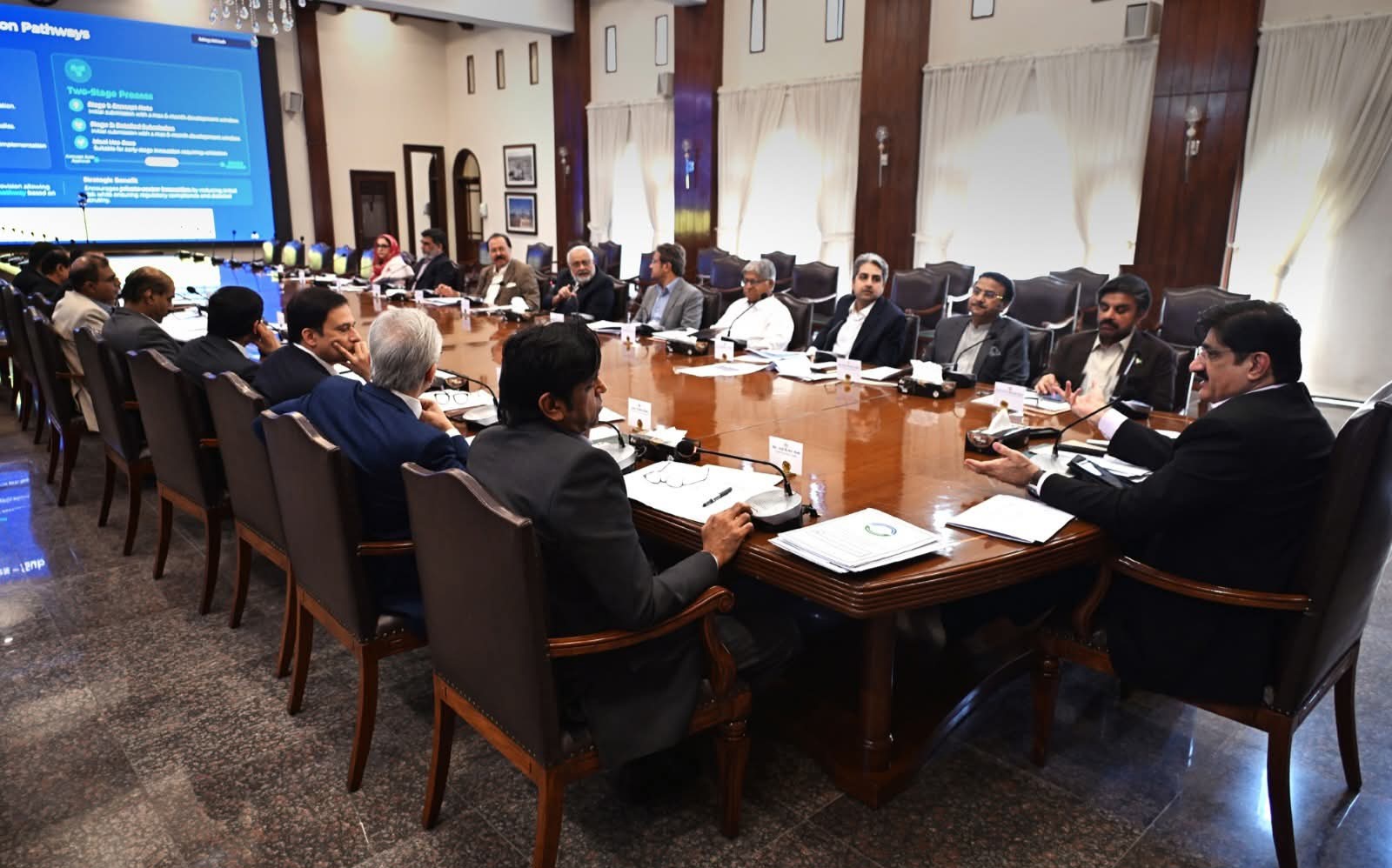 وزیراعلیٰ سندھ سید مراد علی شاہ نے سندھ کے پبلک پرائیویٹ پارٹنرشپ (پی پی پی) نظام کو زیادہ شفاف اور قابلِ سرمایہ کاری بنانے کے لیے کئی اہم فیصلوں کی منظوری دی۔پی پی پی بورڈ نے انفراسٹرکچر منصوبوں میں غیر معمولی بولیوں (abnormal bids) کی جانچ کے لیے نئے قواعد منظور کیے، جن کے تحت تخمینہ لاگت سے 15 فیصد زیادہ یا کم بولیوں کو مسترد کر دیا جائے گا تاکہ مالی نظم و ضبط برقرار رکھا جا سکے۔ اسی طرح، نجی شعبے کی جانب سے پیش کیے جانے والے منصوبوں (unsolicited proposals) کے لیے بھی باقاعدہ طریقہ کار منظور کیا گیا۔ اس میں ’رائٹ آف فرسٹ ریفیوزل‘ (ROFR) کا نظام شامل ہے، جس کے تحت اگر ابتدائی تجویز دینے والا سب سے کم بولی دہندہ نہ بنے، مگر اس کی بولی جیتنے والی بولی سے 20 فیصد سے زیادہ نہ ہو، تو وہ یا تو جیتنے والی بولی کے برابر آ سکتا ہے یا منصوبے کی تیاری کے اخراجات کی واپسی حاصل کر سکتا ہے (زیادہ سے زیادہ 10 کروڑ روپے یا کل لاگت کا 1 فیصد جو کم ہو)۔ ان اقدامات کا مقصد شفافیت بڑھانا، نجی سرمایہ کاری کو فروغ دینا اور سندھ میں پائیدار انفراسٹرکچر ترقی کو یقینی بنانا ہے۔