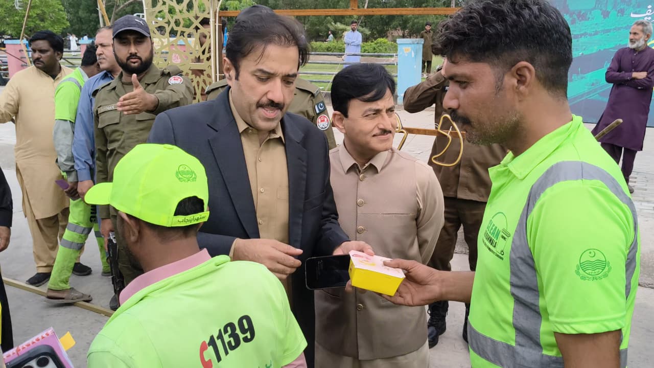 انہوں نے وزیراعلیٰ مریم نواز شریف کی جانب سے سُتھرا پنجاب کے ورکرز میں مٹھائی اور عیدی بھی تقسیم کی۔ صوبائی وزیر نے عملہ صفائی کی کارکردگی کو سراہا اور اُن کی بھرپور حوصلہ افزائی کی۔ انہوں نے گوجرانوالہ میں عید کے موقع پر صفائی کے عمدہ انتظامات پر اطمینان کا اظہار کرتے ہوئے کہا کہ شہریوں کو صاف ستھرا ماحول فراہم کرنے کے لئے کئے گئے اقدامات قابلِ تحسین ہیں۔ صفائی آپریشن کو اسی جذبے سے عید کے تینوں روز جاری رکھا اور دیہی یونین کونسلز پر بھی یکساں توجہ دی جائے۔ انہوں نے کہا کہ فیلڈ سٹاف کی حاضری یقینی بنانے کیلئے سخت مانیٹرنگ جاری رکھیں گے۔کمشنر نوید حیدر شیرازی نے بتایا کہ گوجرانوالہ ڈویژن کے 4 اضلاع کی 13 تحصیلوں میں عید صفائی آپریشن جاری ہے۔ گوجرانوالہ کی 1717 مساجد ، 97 امام بارگاہوں کی خصوصی صفائی اور واشنگ کا انتظام کیا گیا۔ ڈپٹی کمشنر نوید احمد نے صوبائی وزیر کو بتایا کہ گوجرانوالہ میں 13 ہزار 185 سینٹری ورکرز صفائی آپریشن میں حصہ لے رہے ہیں۔ عید آپریشن کے لئے 2480 سے زائد گاڑیاں اور جدید مشینری فیلڈ میں متحرک ہیں۔ انہوں نے بتایا کہ کنٹرول روم، شکایات سیل اور لینڈ فل سائٹس 24 گھنٹے فعال ہیں۔ ہیلپ لائن 1139 اور 080011155 پر موصول ہونے والی شکایات پر فوری ایکشن لیا جا رہا ہے۔وزیر بلدیات ذیشان رفیق گوجرانولہ کے بعد مریدکے اور شاہدرہ ٹائون گئے جہاں انہوں نے عید پلان کے تحت کئے گئے انتظامات کا معائنہ کیا۔ صوبائی وزیر نے سُتھرا پنجاب کے ورکرز سے ملاقات کر کے عیدی اور گفٹس تقسیم کئے۔ انہوں کہا کہ عیدالفطر کے موقع پر سُتھرا پنجاب کی پوری ٹیم مسلسل سرگرم عمل ہے۔ ہر موسم میں عوام کی خدمت کرنے والے ہمارے ہیرو ہیں۔ انشااللہ شہریوں اور وزیراعلیٰ کی توقعات پر پورا اتریں گے۔ ذیشان رفیق نے کہا کہ انہوں نے جہاں جہاں کا دورہ کیا انہیں صفائی کے اچھے انتظامات دیکھنے کو ملے۔ صوبائی وزیر نے خبردار کیا کہ ہیلپ لائن پر درج کرائی گئی شہریوں کی شکایات پر ایکشن میں کوئی سُستی برداشت نہیں کروں گا۔