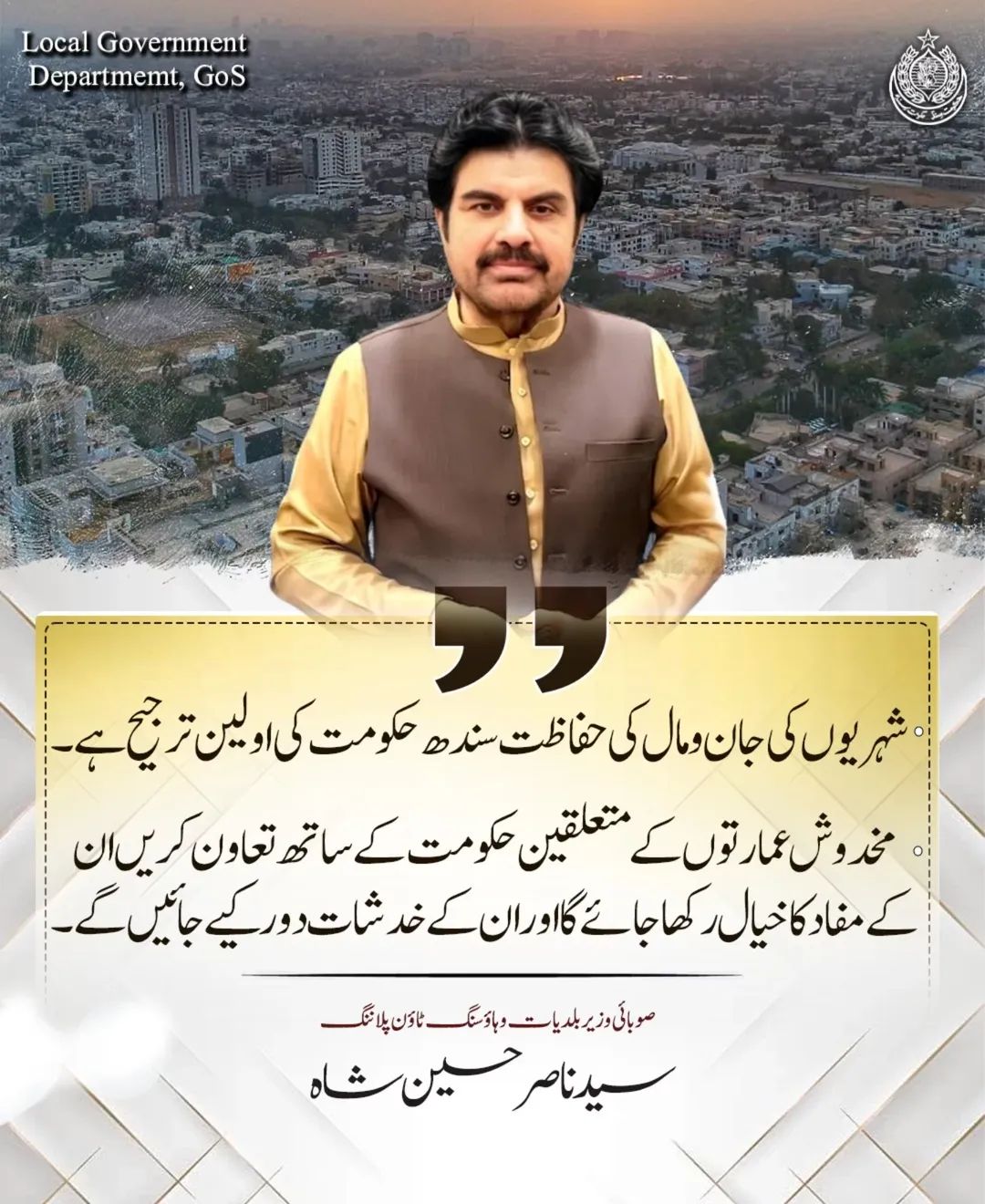 نئے قانون میں عوام کے مفاد کا خاص خیال۔رکھا جائے گا۔ڈجیٹیلائزیشن کے عمل کو تیز کیا جائے۔مخدوش عمارتیں عوام کی جان و مال کے لئے خطرہ ہیں۔عمارتوں کے متعلقین حکومت کے ساتھ تعاون کریں ان کے مفاد کا خیال رکھا جائے گا۔مخدوش عمارتوں کے متعلقین کے خدشات کو دور کیا جائے گا۔مخدوش عمارتوں کو گرانے سے دوبارہ تعمیر تک تمام پروسیس میں قوانین اور شفافیت کا خیال رکھا جائے۔