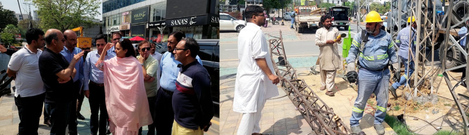 کمشنر لاہور مریم خان و ڈی سی لاہور کیپٹن ر علی اعجاز نے ایم ایم عالم روڈ کا دورہ کیا اور ایکسٹرا الیکٹرک پولز و ہیگنگ وائرز خاتمہ کے لئے جاری آپریشن و عملی اقدامات کا جائزہ لیا۔ اس موقع پر جی ایم ٹیکنیکل رائے اصغر، چیف انجینیر لیسکو فیصل ذکریا، صدر ایم ایم عالم روڈ میاں سلیم نے بریفنگ دی۔ انہوں نے کہا کہ سٹیک ہولڈرز سے مکمل مشاورت کے بعد فیلڈ آپریشنز شروع کر دیئے گئے ہیں، ایم ایم عالم روڈ سے ٹرانسفارمرز منتقلی شروع ہے، لیسکو کی ریجنل ٹیمیں فیلڈ میں متحرک پیں، بھاری مشینری سے کام شروع ہے کھمبوں سے ماونٹڈ پیڈز پر شفٹنگ جاری ہے۔کمشنر لاہور ڈویژن مریم خان نے کہا کہ سڑکوں پر ایکسٹرا کھمبوں کے حوالے سے حکومتی ہدایات پر من وعن عملدرآمد ہوگا، شہر میں ہیگنگ وائرز خاتمہ کیلئے آپریشن بھی مراحل میں جاری ہے۔ انہوں نے کہا کہ ایم ایم عالم روڈ کے 20 سے زائد ٹرانسفارمرز شفٹ اور 50 سے زائد کھمبوں کو روڈ سے ختم کیا جارہا ہے۔ کمشنر لاہور نے کہا کہ لیسکو مراحل پر مشتمل، مکمل اپنے پلان پر عملدرآمد کرے، ضلعی انتظامیہ لاہور لیسکو کو مکمل تعاون فراہم کررہی ہے۔کمشنر لاہور نے کہا کہ شہر میں اضافی کھمبوں اور بے ہنگم تاروں کے خاتمے سے بجلی کی ترسیل، ٹرانسفارمرز کی مرمت و بحالی میں سہولت اور بیوٹیفکیشن میں اضافہ ہوگا، شہر میں جھولتی بے ہنگم کیبلز اور وائرز سیفٹی اور خوبصورتی میں رکاوٹ بنتی ہیں۔