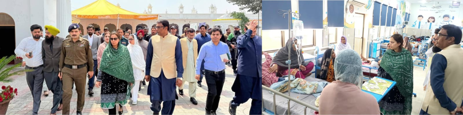 کمشنرلاہورڈویژن مریم خان نے بیساکھی میلہ انتظامات جائزہ کے لئے ضلع ننکانہ صاحب کا دورہ کیا۔ کمشنر لاہور نے گوردوارہ جنم استھان کا دورہ کیا لنگر خانہ، جدید سکینرز و دیگر اقدامات کا جائزہ لیا۔ اس موقع پر ڈی سی ننکانہ صاحب اور ڈی پی او ننکانہ نے انتظامات پر جامع بریفنگ دی۔ انہوں نے کہا کہ گوردوارہ جنم استھان میں عارضی ہسپتال قائم ہو چکا ہے اور مزید ڈی ایچ کیو ہسپتال میں وارڈز مختص کی گئیں ہیں، 2ہزار سے زائد پولیس کے افسران و جوان سکیورٹی فرائض سر انجام دے رہے ہیں۔ بریفنگ میں بتایا گیا کہ ننکانہ سٹی اور شاہرات پر سی سی ٹی وی کیمروں سے نگرانی سمیت 24 گھنٹے پولیس پٹرولنگ ہوگی۔ کمشنر لاہور کو ریسکیو، ٹریفک پلان اور پارکنگ بارے بھی بریفنگ دی گئی۔اس موقع پر گفتگو کرتے ہوئے کمشنرلاہورڈویژن مریم خان نے کہا کہ 10اپریل تا 14اپریل بیساکھی میلہ ہوگا، بیساکھی میلہ شرکاء کو دل کی گہرائیوں سے خوش آمدید کہیں گے۔ انہوں نے کہا بیساکھی میلہ میں شرکت کیلئے ہزاروں سکھ یاتری ننکانہ صاحب پہنچ رہےہیں، بیساکھی میلہ میں شرکت کیلئے تین تا پانچ ہزار غیر ملکی سکھ یاتری بھی آئیں گے۔ کمشنر لاہور نے کہا کہ فارن ڈیسک قائم ہوچکے ہیں سکھ مہمان محکموں کے ساتھ رابطہ میں رہیں، بیساکھی میلے کیلئے پروٹوکول، صفائی، سکیورٹی، میونسپل انتظامات مکمل ہیں، سکھ یاتریوں کی رہائش، سیکورٹی سمیت دیگر بہترین انتظامات کیے گیے ہیں۔ کمشنر لاہور مریم خان نے ضلعی انتظامیہ کو ہدایات دیتے ہوئے کہا کہ ضلعی انتظامیہ گوردواروں کی انتظامیہ سے قریبی رابطہ رکھے، گوردواروں میں بجلی ترسیلی نظام کو محفوظ بنایا جائے، فوڈ اتھارٹی لنگر و دیگر کھانے پینے والی اشیاء کو لازمی چیک کریں، متعلقہ ادارے انتظامات کو یقینی بنائیں۔ کمشنر لاہور نے شائع کیا انٹرنیشنل ایونٹ ہے ٹیم ورک سے کام کریں سہولیات میں کوئی کمی نہ رہے۔کمشنر لاہور ڈویژن مریم خان نے ڈی ایچ کیو ہسپتال ننکانہ صاحب کا دورہ کیا۔ انہوں نے ہسپتال ایمرجنسی کا دورہ کیا اور انتظامات کا جائزہ لیا۔کمشنر لاہور نے مریضوں کے لواحقین سے بات چیت کی اور ادویات کی فراہمی اور دیگر سہولیات بارے دریافت کیا۔بعد ازاں کمشنر لاہور ڈویژن مریم خان نے ضلع ننکانہ صاحب میں سپورٹس کمپلیکس کا افتتاح بھی کیا۔