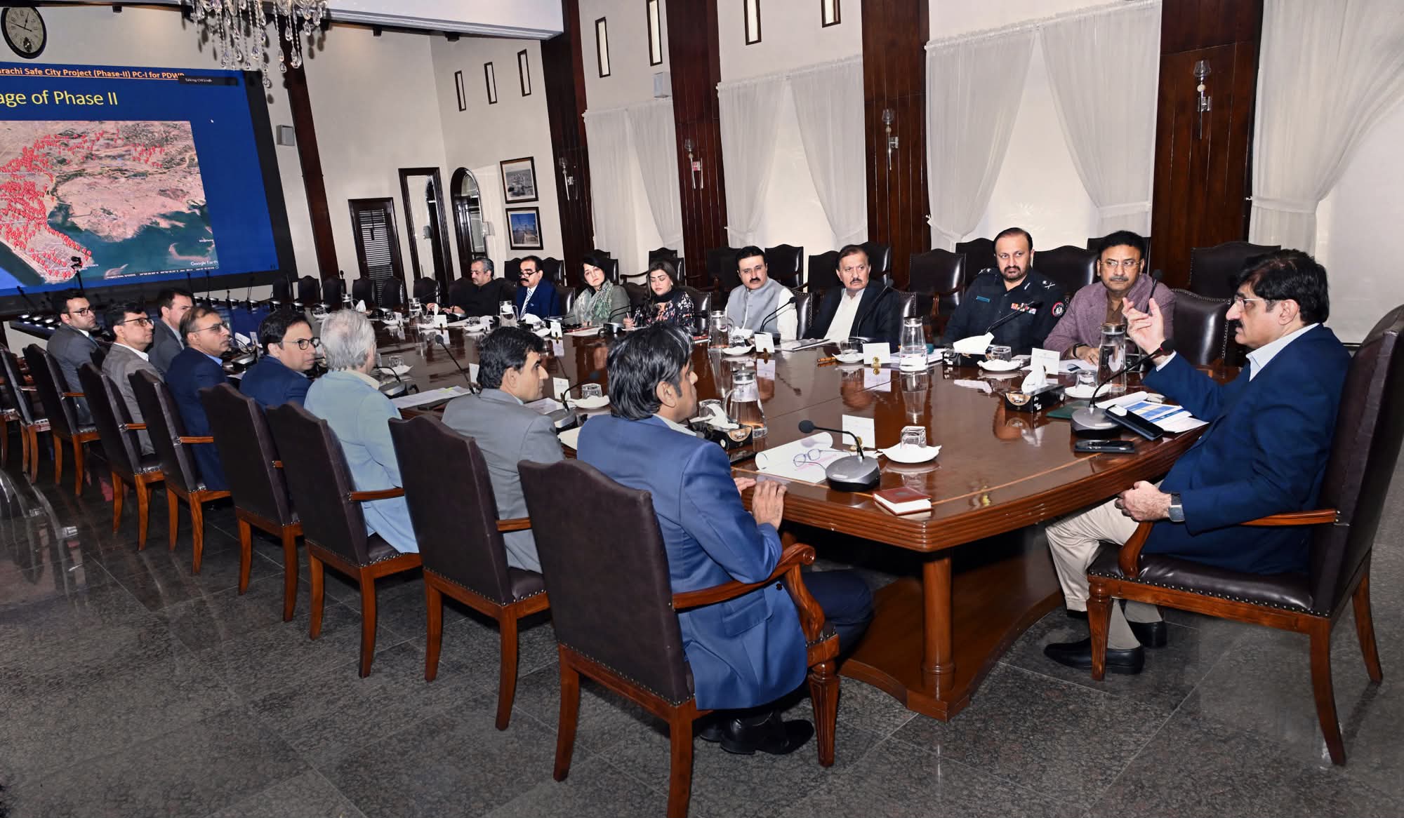 وزیراعلیٰ سندھ سید مراد علی شاہ نےکراچی سیف سٹی پروجیکٹ کے فیزٹو کی منظوری دے دی، جس کے تحت شہر میں شہری سکیورٹی، نگرانی اور قانون نافذ کرنے والے اداروں کی استعداد کو مضبوط بنانے کے لیے 2,300 سے زائد اسمارٹ کیمروں اور جدید مانیٹرنگ انفراسٹرکچر کی تنصیب کی جائے گی۔وزیراعلیٰ ہاؤس میں سندھ سیف سٹیز اتھارٹی (ایس ایس سی اے) کے اجلاس کی صدارت کرتے ہوئے وزیراعلیٰ نے کہا کہ جدید ٹیکنالوجی کے ذریعے عوامی تحفظ کو یقینی بنانا حکومت کی اولین ترجیح ہے۔ اجلاس میں صوبائی وزیر داخلہ ضیاء الحسن لنجار، چیف سیکریٹری آصف حیدر شاہ، انسپکٹر جنرل پولیس (آئی جی پولیس) جاوید اوڈھو، پرنسپل سیکریٹری ٹو وزیراعلیٰ (پی ایس سی ایم) آغا واصف، سیکریٹری داخلہ اقبال میمن، چیئرمین منصوبہ بندی و ترقی (پی اینڈ ڈی) نجم شاہ، سیکریٹری خزانہ فیاض جتوئی، سیکریٹری ایکسائز سلیم راجپوت، ڈائریکٹر جنرل ایس ایس سی اے سرفراز نواز، آغا فخر، ڈائریکٹر جنرل پی ڈی ایم اے سلمان شاہ، اراکین اسمبلی سید سرفراز شاہ، علی حسن ہنگورجو، سمتا افضل، حمیرا فراز اور دیگر نے شرکت کی۔اجلاس کو بتایا گیا کہ منصوبے کے فیزٹو کے تحت مجموعی طور پر 2,314 اسمارٹ سرویلنس کیمرے نصب کیے جائیں گے، جن میں 870 عمومی نگرانی، 1,300 آٹومیٹک نمبر پلیٹ ریکگنیشن (اے این پی آر) اور فیشل ریکگنیشن سے لیس، 80 ٹریفک نفاذ کے لیے، 56 موبائل سرویلنس یونٹس اور 8 ٹریفک سگنل مانیٹرنگ کے لیے مختص ہوں گے۔یہ کیمرے کراچی کے مختلف اضلاع میں نصب کیے جائیں گے، جن میں ضلع جنوبی میں سب سے زیادہ 322 کیمرے، اس کے بعد ضلع شرقی 220، کورنگی 27، کیماڑی 17، ملیر 16 اور ضلع غربی میں ایک کیمرہ نصب کیا جائے گا، جس سے شہر کے مانیٹرنگ نیٹ ورک میں نمایاں توسیع ہوگی۔تقریباً 9.98 ارب روپے لاگت کے اس منصوبے کی تکمیل 12 ماہ میں متوقع ہے، جبکہ کام مئی 2026 میں شروع ہونے کا امکان ہے۔ انفراسٹرکچر میں 9 پوائنٹس آف پریزنس (پی او پی) سائٹس شامل ہوں گی جن میں سولر اور جنریٹر بیک اپ، ایک اسمارٹ سرویلنس ٹاور، مرکزی کمانڈ سسٹم سے منسلک 50 پبلک پینک بٹن، آن بورڈ کیمروں سے لیس 8 رسپانس گاڑیاں اور 10 سرویلنس ڈرونز شامل ہیں۔مراد علی شاہ نے بتایا کہ خریداری کے عمل میں مذاکرات کے ذریعے ایک ارب روپے سے زائد کی بچت کی گئی، جو مالی نظم و ضبط کی عکاسی ہے جبکہ معیار پر کوئی سمجھوتہ نہیں کیا گیا۔ انہوں نے کہا کہ یہ صرف ایک ترقیاتی منصوبہ نہیں بلکہ عوامی تحفظ اور قومی سلامتی میں اہم سرمایہ کاری ہے۔وزیراعلیٰ نے حکام کو ہدایت دی کہ منظوری کے عمل کو تیز کیا جائے اور بروقت تکمیل کو یقینی بنایا جائے، بصورت دیگر تاخیر سے لاگت میں اضافہ ہو سکتا ہے، خصوصاً عالمی سطح پر سرویلنس آلات کی قیمتوں میں اضافے کے تناظر میں۔آپریشنل تیاری کو مضبوط بنانے کے لیے ایس ایس سی اے نے تکنیکی عملے کی بھرتی کا شفاف عمل مکمل کر لیا ہے، جو ماہرین پر مشتمل پینلز اور نگرانی کمیٹیوں کے ذریعے میرٹ پر مبنی متعدد مراحل میں کیا گیا۔ وزیراعلیٰ نے ایس ایس سی اے ایکٹ کے تحت تقرریوں کی منظوری دے دی۔کراچی کے علاوہ اجلاس میں حیدرآباد، سکھر، لاڑکانہ، میرپورخاص اور شہید بینظیر آباد سمیت ڈویژنل ہیڈکوارٹرز میں سیف سٹی منصوبے قائم کرنے کی تجاویز کا بھی جائزہ لیا گیا، جن کی مجموعی لاگت 3.15 ارب روپے ہے اور ان کے تحت 780 کیمرے نصب کیے جائیں گے۔ فیصلہ کیا گیا کہ ان تجاویز کو مزید جائزے کے لیے محکمہ منصوبہ بندی و ترقی کو بھیجا جائے گا۔وزیراعلیٰ نے زور دیا کہ تمام سیف سٹی اقدامات کو ایک متحدہ ایس ایس سی اے فریم ورک کے تحت مربوط کیا جائے تاکہ معیار کو یکساں رکھا جا سکے، تکرار سے بچا جا سکے اور ادارہ جاتی ہم آہنگی کو فروغ دیا جا سکے۔ انہوں نے کہا کہ بکھرے ہوئے نظام مؤثریت کو متاثر کرتے ہیں جبکہ مقصد سندھ بھر میں مکمل طور پر مربوط کمانڈ اینڈ کنٹرول نیٹ ورک قائم کرنا ہے۔وزیراعلیٰ نے کہا کہ سیف سٹی منصوبہ نہ صرف جرائم کی روک تھام اور ردعمل کو بہتر بنائے گا بلکہ ٹریفک مینجمنٹ اور ایمرجنسی سروسز کو بھی مؤثر بنائے گا، جس