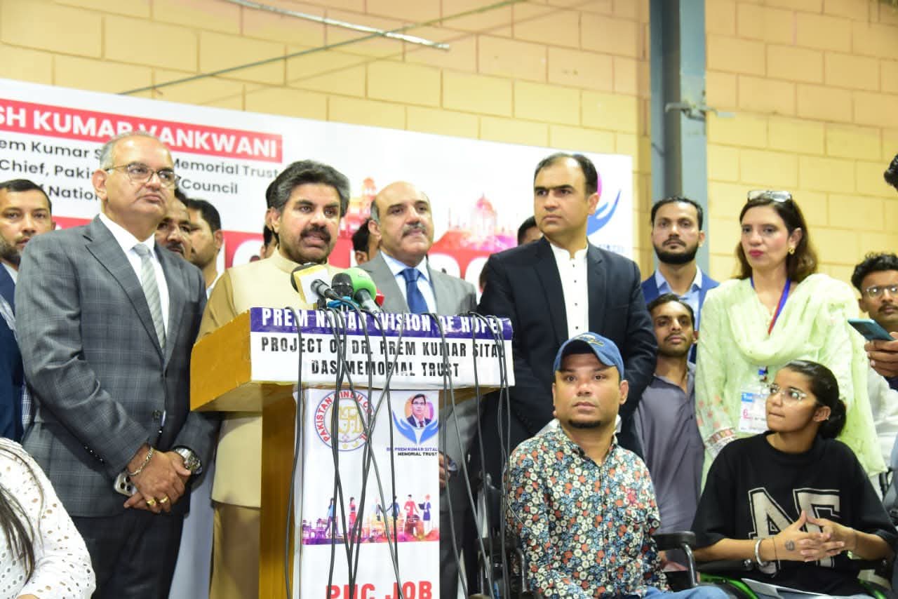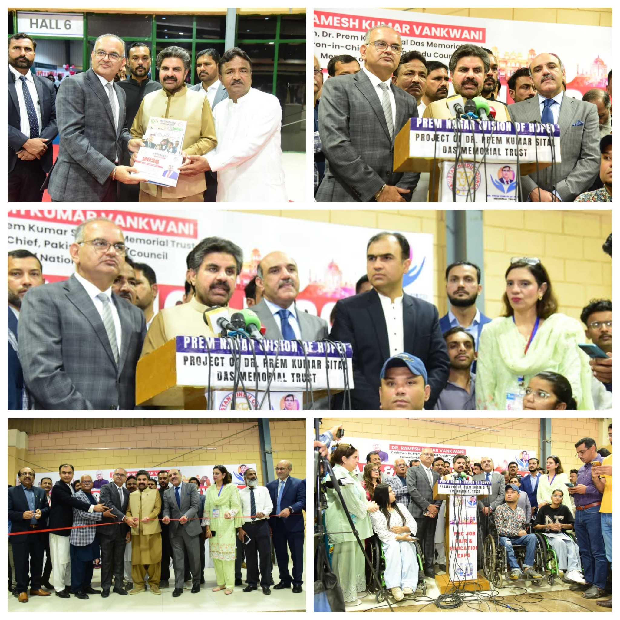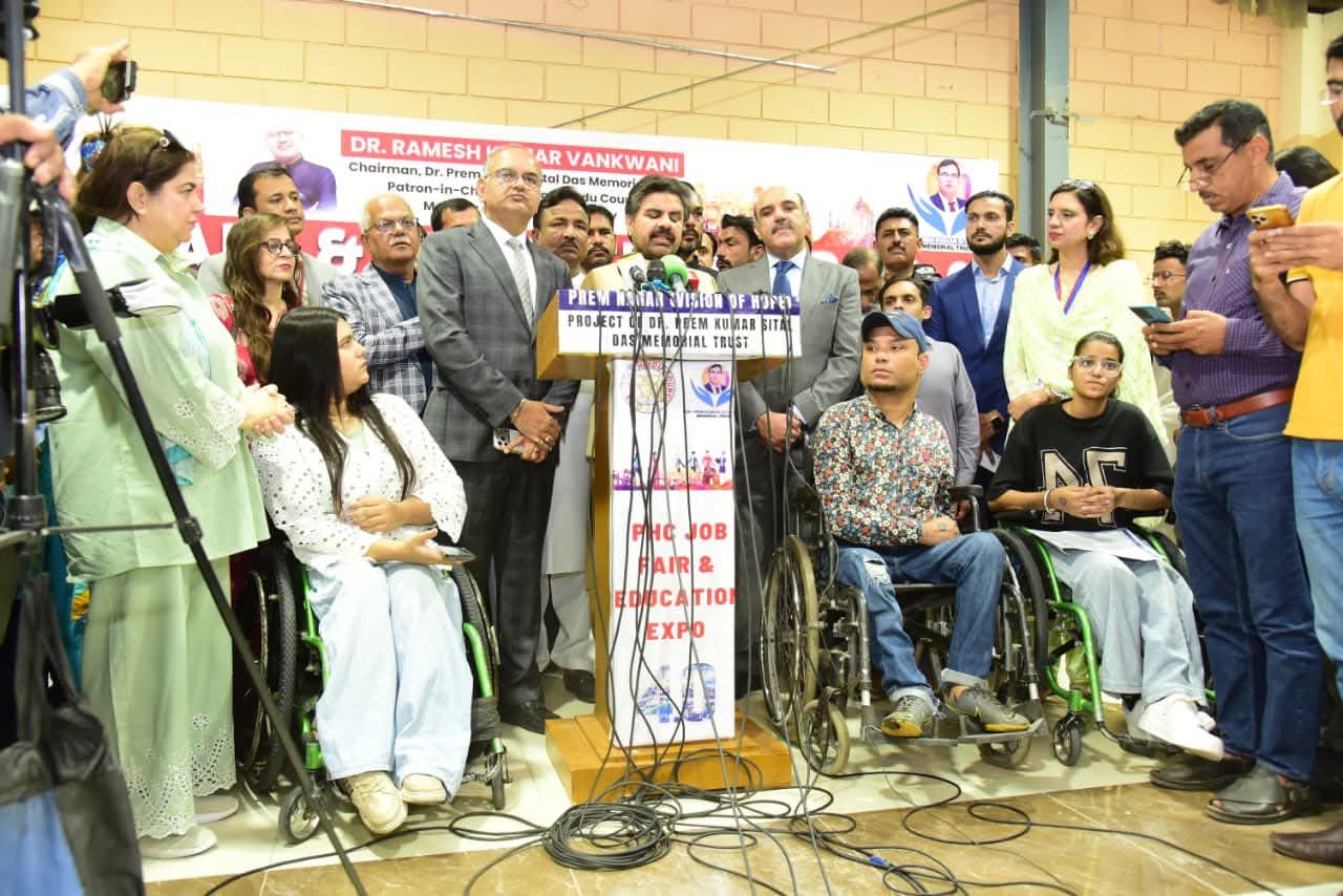 ۔ ان خیالات کا اظہار انہوں نے اج ایکسپو سینٹر میں منعقدہ چوتھے سالانہ جاب اینڈ ایجوکیشن فیئر کے افتتاحی تقریب کے موقع پر اپنے خطاب اور میڈیا سے بات چیت کے موقع پر کیا۔اس موقع پر تقریب کے روح رواں ممبر قومی اسمبلی ڈاکٹر مہیش کمار، چیئرمین ہائر ایجوکیشن کمیشن HEC پروفیسر ڈاکٹر نیاز احمد اختر کے علاوہ کمشنر کراچی سید حسن نقوی کے علاوہ دیگر معززین بھی ان کے ہمراہ تھے۔وزیر بلدیات سید ناصر حسین شاہ نے اپنے خطاب میں کہا کہ سرکاری اور نجی اداروں میں اسپیشل افراد کے لیے مختص جاب کوٹے پر عمل درامد کے لیے سندھ حکومت ہر ممکن اقدامات کر رہی ہے۔سرکاری اداروں میں اسپیشل افراد کے کوٹے پر سختی سے عمل کیا جا رہا ہے جبکہ پبلک سیکٹرز اور صنعتی اداروں میں نئی جاب کوٹے پر عمل کے لیے ممکن کاوشیں کی جا رہی ہیں۔ انہوں نے کہا کہ اس نمائش میں نہ صرف سرکاری اداروں بلکہ بڑی تعداد میں پبلک سیکٹرز کے بھی سٹالز موجود ہیں جو کی خوش آئند بات ہے۔گزشتہ نمائش سے کافی بے روزگاروں کو جاب کے حوالے سے فوائد حاصل ہوئے ہیں امید ہے کہ اس دفعہ بھی جاب کے حوالے سے بے روزگار نوجوانوں کو روزگار کے مواقع حاصل ہوں گے۔وزیر بلدیات نے مزید کہا کہ عوام کو روزگار کی فراہمی چیئرمین بلاول بھٹو کا وژن اور پیپلز پارٹی کا منشور بھی ہے۔وزیر بلدیات نے روزگار کی فراہمی کے لیے ڈاکٹر مہیش کمار اور ان کی ٹیم کی کاوشوں کو سراہا۔اس موقع پر وزیر بلدیات کو یادگار ری شیلڈ پیش کی گئی جبکہ ناصر حسین شاہ نے سٹالز کا معائنہ بھی کیا۔