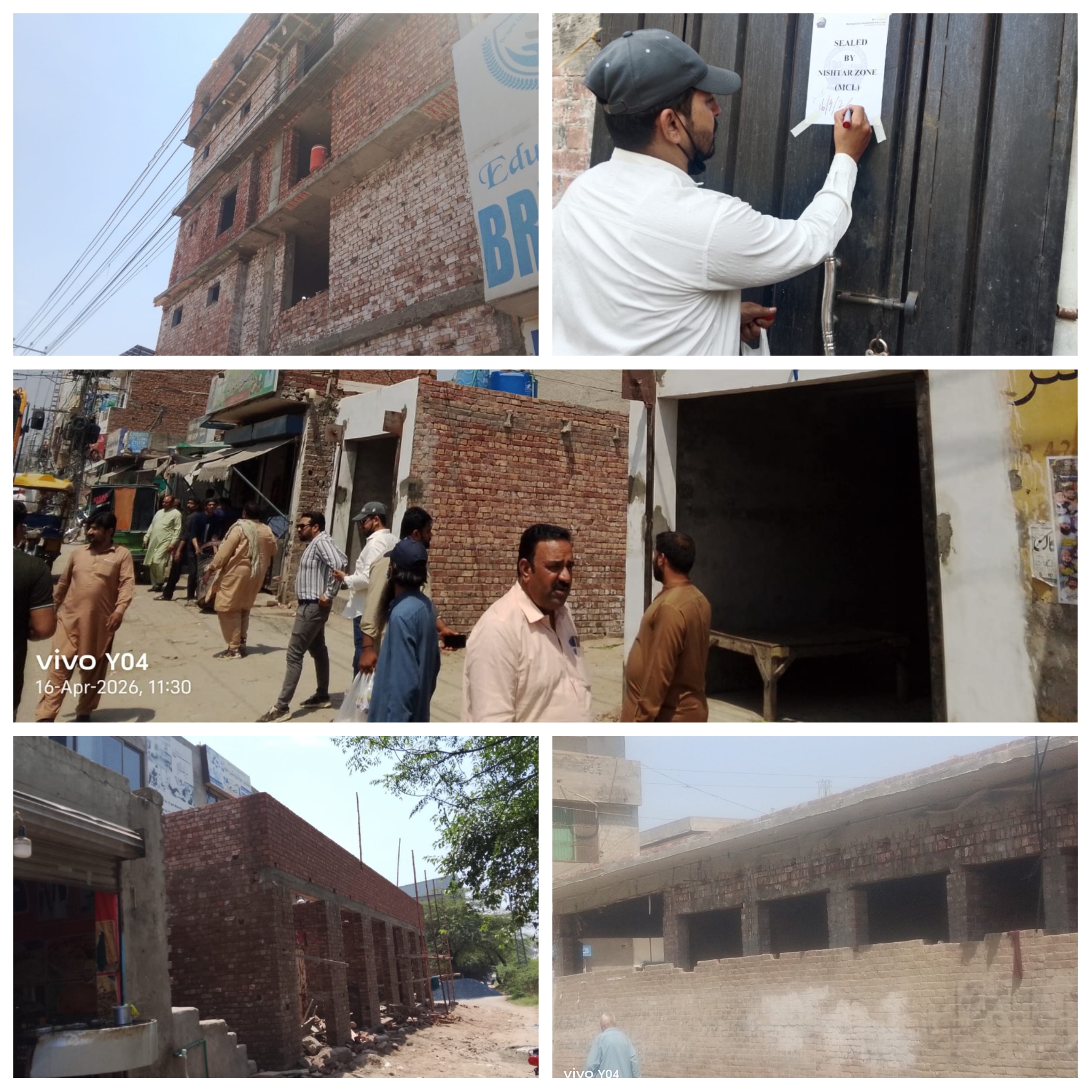 ۔چار غیر قانونی عمارتوں کو سربمہر کر دیا گیا۔میٹروپولیٹن آفیسر پلاننگ ڈاکٹر رائے امتیاز حسن کی نگرانی میں اٹاری سروبا، آشیانہ روڈ،بہادر آباد ،عطا بخش روڈ اور کماہاں کے علاقوں میں کارروائی کی گئی۔بلدیہ عظمٰی لاہور کی جانب سے غیر قانونی تعمیرات کے حوالے سے زیرو ٹالرنس کے بعد ایک ماہ کے دوران ڈھائی سو سے زائد غیر قانونی تعمیرات کے خلاف کارروائی کی گئی ہے۔جس کی بڑی وجہ آپریشن کا تسلسل ہے جو روزانہ کی بنیاد پر زونز کی سطح پر جاری ہے۔متعلقہ اسسٹنٹ کمشنرز، شعبہ ریگولیشنز اور پیرا کے ساتھ بھی کوآرڈینیشن بہتر بنائی گئی ہے۔