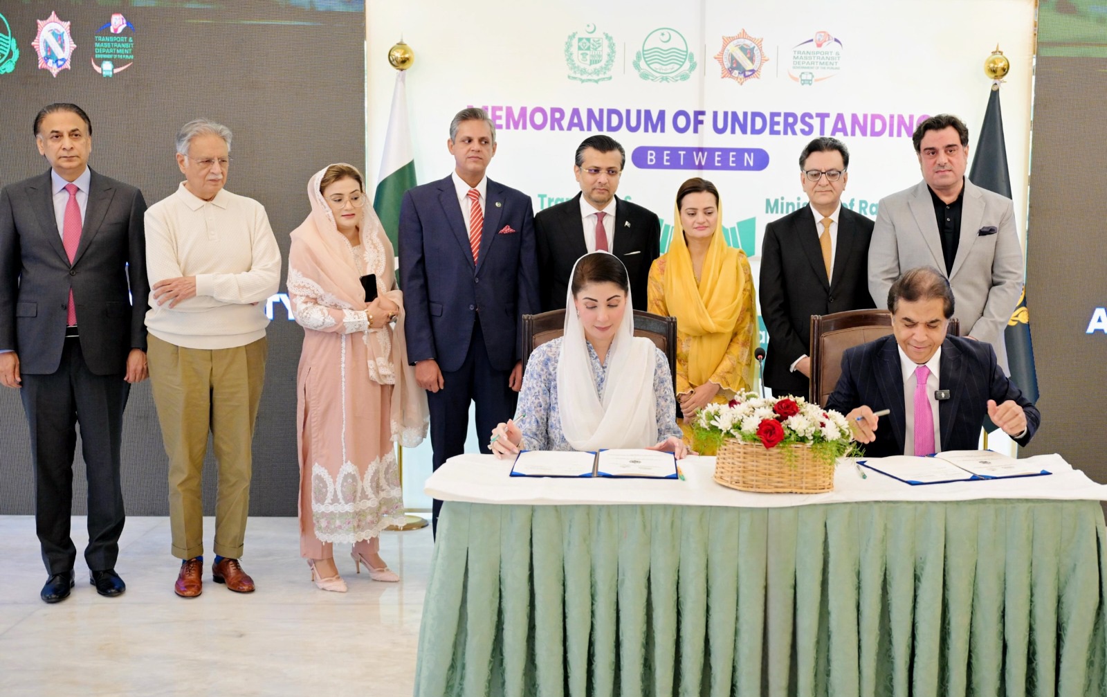 حکومت پنجاب اور پاکستان ریلوے کے درمیان تاریخ ساز قرارداد مفاہمت کے تحت صوبے میں ریلوے ٹرانسپورٹ کے نئے عہد کا آغازہوگیا ہے۔ وزیراعلیٰ پنجاب مریم نواز شریف اور وزیرریلوے حنیف عباسی نے ایم او یو پر دستخط کردئیے۔ تاریخ ساز قراردادمفاہمت کے تحت لاہور سے راولپنڈی تک پاکستان کی پہلی فاسٹ ٹرین چلے گی جس میں سوا دو گھنٹے میں سفر طے ہوگا۔ بریفنگ میں بتایا گیا کہ پنجاب کے 20ریجن میں 8لوکل روٹس پر 1415 کلو میٹر فاسٹ ٹرینیں چلائی جائیں گی۔ پنجاب میں فاسٹ ٹرین اور 8لوکل روٹس پر جدید ترین ٹرین چلائی جائیں گی۔تاریخ سازقرار داد مفاہمت کے تحت حکومت پنجاب علاقائی روٹس پر جدید ترین ڈی ایم یو ٹرین مہیا کرے گی۔ شاہدرہ سے نارووال 79 کلومیٹر اورنارووال سے سیالکوٹ 62 کلومیٹر روٹ پر ٹرین چلے گی۔ رائیونڈ،قصور، پاکپتن سے لودھراں تک 370 کلومیٹر طویل روٹ پر نئی ٹرین چلے گی۔ شیخوپورہ، جڑانوالہ، شورکوٹ کے220 کلومیٹر طویل روٹ پر ٹرین چلائی جائے گی۔ نئی ٹرین لالہ موسیٰ، ملکوال، سرگودھا147کلومیٹرطویل روٹ پر بھی چلائی جائیگی۔ فیصل آباد سے براستہ چک جھمرہ، شاہین آبادکے 68 کلومیٹر طویل روٹ پربھی ٹرین چلے گی۔ کوٹ ادو سے براستہ ڈیرہ غازی خان،کشمورتک 303 کلومیٹر طویل بین الصوبائی روٹ پر بھی ٹرین چلانے کے منصوبے کوشامل کیا گیا ہے۔ حکومت پنجاب نئے روٹس پر نئے ریلوے انجن اور نئی جدید ترین کوچ لائے گی۔ وفاقی وزیرریلوے حنیف عباسی نے وزیراعلیٰ مریم نواز شریف کو ریلوے کے تاریخی پراجیکٹ کے اجراء پر خراج تحسین پیش کیااور کہا کہ وزیراعلیٰ مریم نواز شریف کی تقلید کرتے ہوئے پاکستان ریلوے کی تاریخ بدلنا چاہتے ہیں۔حکومت پنجاب کی معاونت سے 9 روٹ پر تقریباً 9 کروڑ افراد مستفید ہوسکیں گے۔خوشی ہے کہ وزیراعلیٰ پنجاب ریلوے ٹرانسپورٹ پراجیکٹ کو لیڈ اور سپروائز کریں گی۔پنجاب میں وزیراعلیٰ مریم نواز شریف کی سربراہی میں انقلابی اقدامات کیے گئے۔ وزیراعلیٰ مریم نواز شریف نے پورے صوبے میں ستھرا پنجاب پراجیکٹ شروع کیا۔ہیلتھ، ایجوکیشن، آئی ٹی اور دیگر شعبوں میں وزیراعلیٰ مریم نواز شریف نے تاریخ ساز اقدامات کیے۔وزیرریلوے حنیف عباسی نے کہا کہ لاہور کے تاریخی ریلوے اسٹیشن کی حالت زار بدلنے پر وزیراعلیٰ مریم نواز شریف کے ممنون ہیں۔پنجاب بھر ریلوے حادثات کے سدباب کے لئے خودکار سسٹم (unmanned) لایا جارہا ہے۔لاہورریلوے اسٹیشن کی بیوٹیفکیشن اور عالمی معیار کی پارکنگ بنائی جارہی ہے۔شاہدرہ سے رائیونڈ تک40 کلومیٹر طویل گرین پارکس بننے سے ٹریک کے اطراف میں یورپی ممالک کی طرز پر خوش کن مناظرنظر آئیں گے۔پنجاب میں ریلوے ٹریک کے اطراف میں چار لاکھ سے زائد پودے بھی لگائے جارہے ہیں۔وزیراعلیٰ مریم نواز شریف کی جو سپیڈ ہے، پورے پنجاب کو آٹو پر لگا دیا ہے۔پنجاب کے 70 فیصد سے زائد عوام نے مریم نواز شریف کی لیڈر شپ پر اظہار اطمینان کیاہے۔حنیف عباسی نے کہا کہ وزیراعلیٰ مریم نواز شریف نے کام کیے وہ نظر آرہے ہیں، کام ہی کامیابی ہے۔ ماضی میں پاکستان ریلوے کا ایک کلومیٹربھی ٹریک نہیں بنا اور نہ کسی نے سرمایہ کاری کی۔وزیر ریلوے کا قلمدان سنبھالنے کے بعد پنجاب میں ریلوے ٹرانسپورٹ کی معیاری سہولت کا خواب پورا ہونے پر وزیراعلیٰ مریم نواز شریف کا مشکور ہوں۔ پنجاب کے عوام کو یورپ کے معیار کے مطابق ریل کی سفری سہولت دینے جارہے ہیں۔وفاقی وزیر ریلوے حنیف عباسی نے مزید کہا کہ سینئر منسٹر مریم اورنگزیب نے وزیراعلیٰ مریم نواز شریف کے خواب کو عملی تعبیر دینے کے لئے ایک سال بہت محنت کی۔لاہور سے راولپنڈی280 کلومیٹر طویل سفر سوا دو گھنٹے میں طے ہوگا۔انہوں نے کہا کہ وزیراعلیٰ مریم نواز شریف سے عوامی خدمت کے اس پراجیکٹ کی خود نگرانی کی درخواست کی ہے۔وزیراعلیٰ مریم نواز شریف نے پنجاب کے تقریباً 11 کروڑ عوام کو یورپ کی طرز ٹرانسپورٹ مہیا کرنے کی خواہش کا اظہار کیا۔