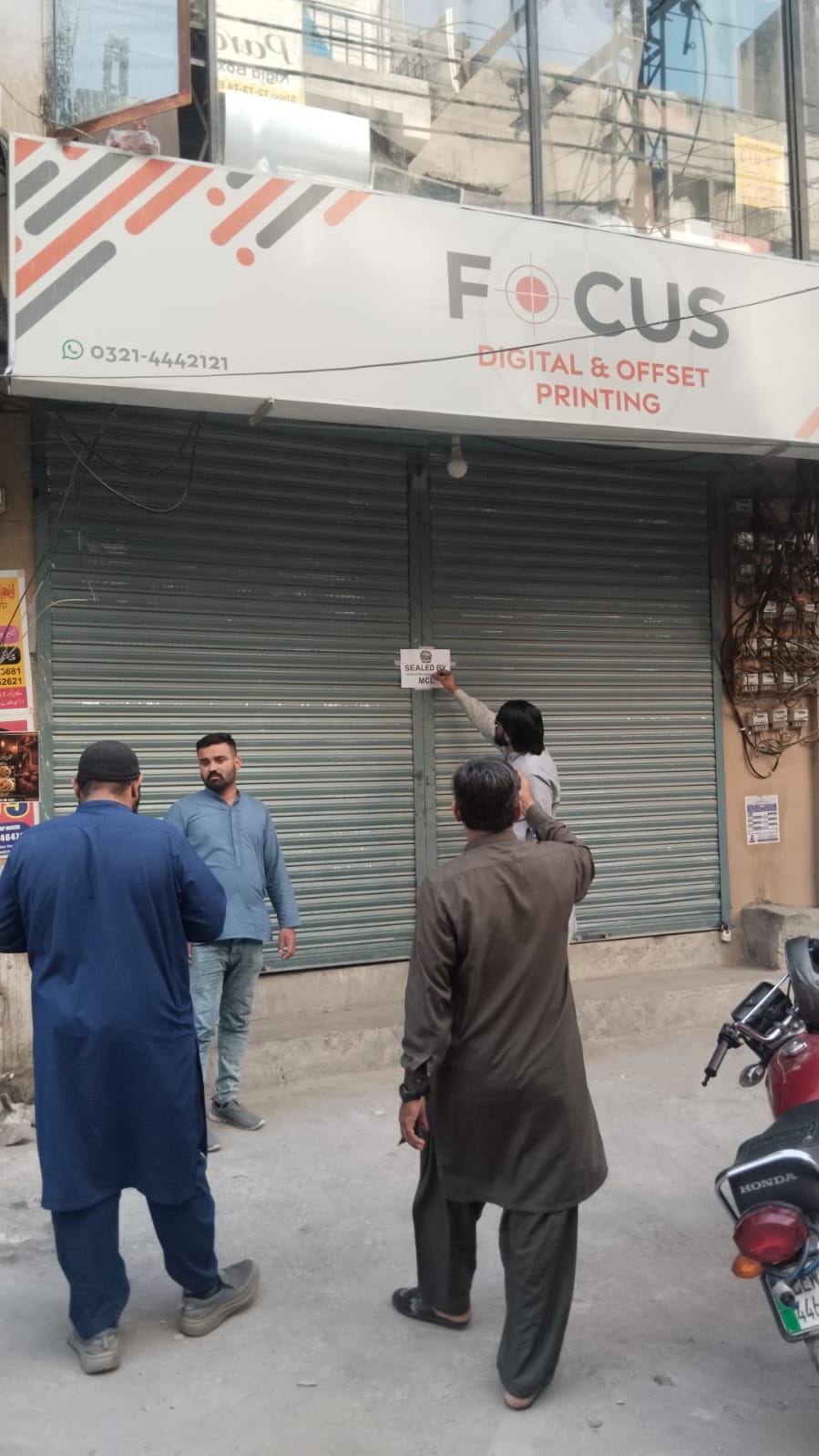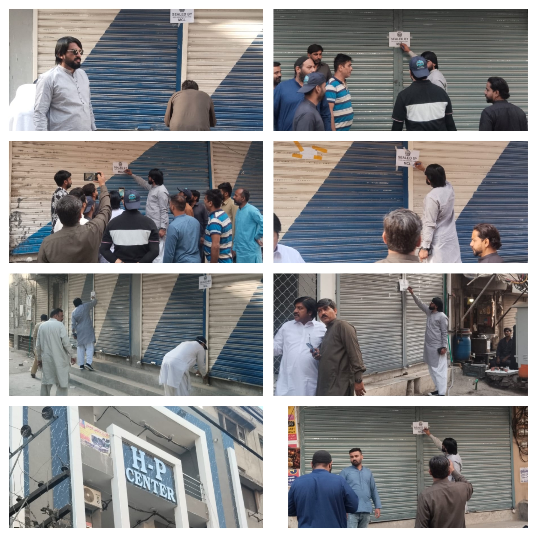 میٹروپولیٹن آفیسر پلاننگ ڈاکٹر رائے امتیاز حسن کی نگرانی میں ایم سی ایل اورداتا گنج بخش زون شعبہ پلاننگ کے اسکواڈ نےایچ پی سنٹر،السید پلازہ، انس بلڈنگ،حبیب ٹاور،اقراء سنٹر اور عیسی موسٰی سنٹر کو سیل کر دیا۔ان پلازوں کے مالکان کے خلاف پہلے ہی ایف آئی آرز کے لئے تھانہ قلعہ گجر سنگھ میں استغاثے جمع کروائے جا چکے ہیں۔