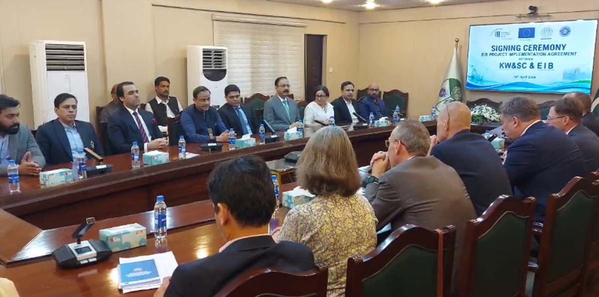 اس موقع پر سی او او انجینئر اسداللہ خان، سی ایف او عمار علی خان، پراجیکٹ ڈائریکٹر KWSSIP عائشہ حمید، چیف کمیونیکیشن آفیسر نوید صدیقی، چیف کمرشل آفیسر حارث سرفراز، چیف انٹرنل آڈیٹر مہناج الرحمن، چیف ای اینڈ ایس وقار شاہ، فوکل پرسن (EIB) پروگرام انتخاب راجپوت اور دیگر اعلیٰ حکام بھی موجود تھے۔ یورپی یونین کی جانب سے سفیر برائے پاکستان ریمونڈس کاروبلس، ہیڈ آف کوآپریشن جیرون ولمس اور لون آفیسر مارکو آرین نے بھی تقریب میں شرکت کی۔ ترجمان واٹر کارپوریشن کے مطابق معاہدے کے تحت گھارو اور پپری پمپنگ اسٹیشنز پر جدید واٹر فلٹریشن پلانٹس قائم کیے جائیں گے، جبکہ فلٹریشن نظام کی جدید ڈیزائننگ اور مؤثر نگرانی بھی منصوبے کا حصہ ہوگی۔ منصوبے کا مقصد پانی کے نظام کی کارکردگی میں بہتری لانا اور بین الاقوامی مالی معاونت کے ذریعے شہر کے واٹرسسٹم کو جدید خطوط پر استوار کرنا ہے۔ اس موقع پر خطاب کرتے ہوئے میئر کراچی بیرسٹر مرتضیٰ وہاب نے کہا کہ یورپی انویسٹمنٹ بینک کی جانب سے 10 سال بعد پاکستان میں سرمایہ کاری کا آغاز ایک مثبت اور خوش آئند پیش رفت ہے۔ انہوں نے کہا کہ یہ معاہدہ شہریوں کو صاف، محفوظ اور معیاری پانی کی فراہمی یقینی بنانے کی جانب اہم قدم ہے کیونکہ کراچی جیسے بڑے شہر کے لیے جدید اور پائیدار واٹر مینجمنٹ سسٹم ناگزیر ہوچکا ہے اور اس نوعیت کے بین الاقوامی اشتراک سے نہ صرف جدید ٹیکنالوجی کی منتقلی ممکن ہوگی بلکہ بنیادی ڈھانچے کو بھی مزید مضبوط بنایا جا سکے گا۔ انہوں نے کہا مفاہمتی یادداشت کے تحت دونوں اداروں کے درمیان قریبی تعاون سے بڑے منصوبوں کو عملی جامہ پہنایا جائے گا، جس سے پانی کی فراہمی کے نظام میں بہتری اور وسائل کے پائیدار استعمال کو فروغ ملے گا۔ میئر کراچی نے مزید کہا کہ جدید ٹیکنالوجی اور بین الاقوامی معیار کے منصوبوں کے ذریعے شہریوں کو بہتر سہولیات کی فراہمی اولین ترجیح ہے اور یہ معاہدہ شہر کے پانی کے نظام میں بہتری کے حوالے سے سنگ میل ثابت ہوگا۔ انہوں نے اس عزم کا اعادہ بھی کیا کہ آئندہ بھی یورپی انویسٹمنٹ بینک کی جانب سے مزید ترقیاتی منصوبے شروع کیے جائیں گے، جن کے مثبت اثرات مستقبل میں نمایاں طور پر سامنے آئیں گے۔