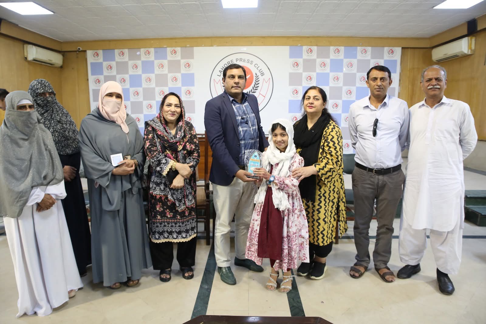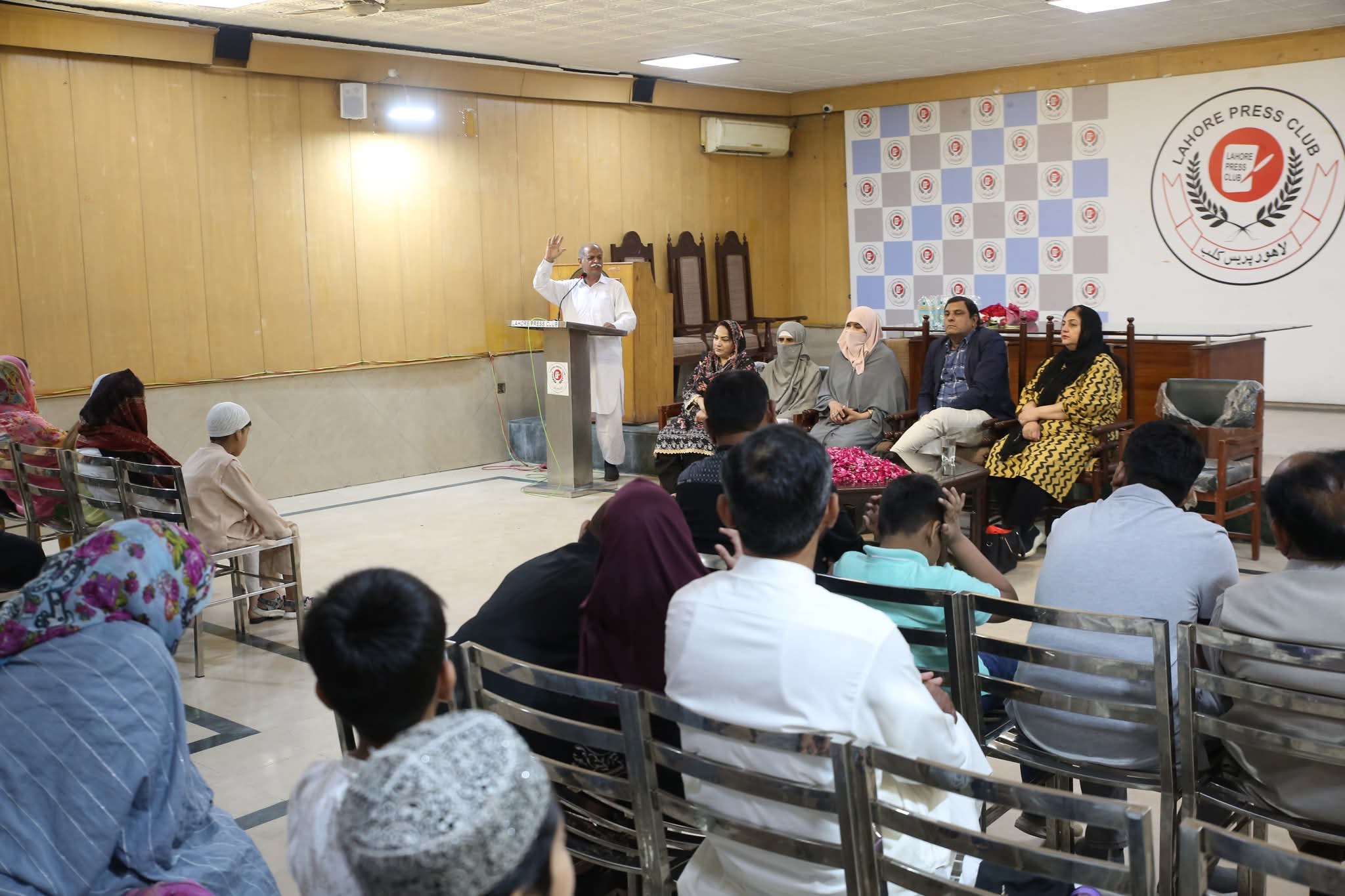 اقراءپریس کلب اور جماعت اسلامی حلقہ خواتین کے زیراہتمام ممبران کے بچوں اور خواتین کے مابین مقابلہ حسن قرآت اور نعت خوانی منعقد ہواجس میں فرسٹ سیکنڈ اور تھرڈ پوزیشن لینے والے بچوں اور بچیوں میں انعامات تقسیم کئے گئے ۔اس موقع پر لاہورپریس کلب کے جنرل سیکرٹری افضال طالب، جوائنٹ سیکرٹر ی عمران شیخ ، سینئر صحافی حامد نواز ، شاہدہ بٹ ،عدنان لودھی ، حلقہ خواتین جماعت اسلامی پاکستان کی مرکزی ڈپٹی سیکرٹری اطلاعات شہناز عاصمہ ، وسطی پنجاب کی ڈپٹی سیکرٹری اطلاعات شازیہ محمود اور جماعة المحضات لاہور کی اساتذہ کرام ساجدہ رشید ، ثوبیہ منیر اور ممبران کی فیملیز خصوصاََ بچوں کی بڑی تعدادموجود تھی ۔ بچوں اور بچیوں کی بڑی تعداد نے مقابلہ حسن قرآت ونعت خوانی میں شرکت کی۔ مقابلہ حسن قرآت و نعت خوانی میں بچوں نے بڑھ چڑھ کر حصہ لیا۔