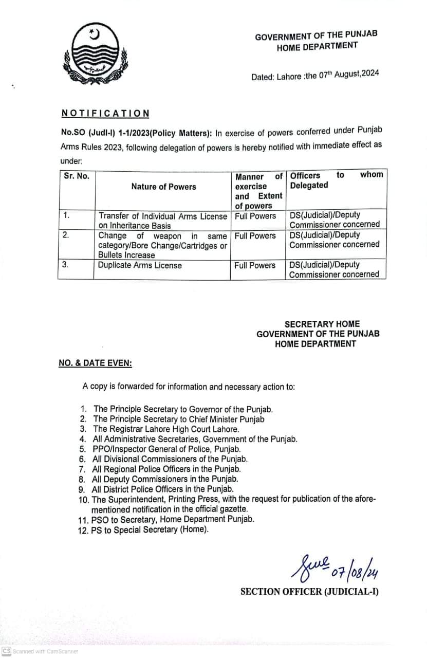 اختیارات کی منتقلی پنجاب آرمز رولز 2023 کے تحت کی گئی