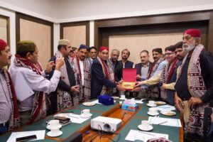 ملاقات کے موقعے پر سندھ کے سینئر وزیر شرجیل انعام میمن نے لاہور کو صحافیوں کو سندھی اجرک اور ٹوپی کے تحائف پیش کئے ۔