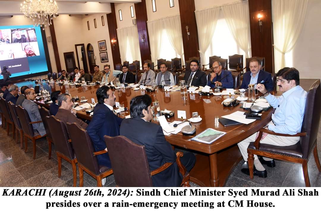KARACHI (August 26): Sindh Chief Minister Syed Murad Ali Shah chairing a meeting to discuss emergency measures in response to heavy rainfall alerted all local bodies, district administration, and the Irrigation department to be prepared for timely action in case of any emergency.