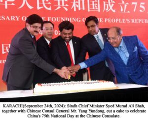 ان خیالات کا اظہار انہوں نے عوامی جمہوریہ چین کے پچہترویں قومی دن پرچینی قونصل جنرل یانگ یونڈونگ کی جانب سے منعقد کی گئی تقریب سے خطاب کرتے ہوئے کیا۔ انہوں نے اس پرمسرت موقع پر چینی حکومت اور عوام کو دلی مبارکباد بھی دی۔ مراد علی شاہ نے کہا کہ دور اندیش قیادت کے تحت چین کی پچہتر سالہ ترقی کا سفر دنیا میں کئی ممالک کےلیے مثال ہے۔ چین نے مختصر وقت میں جو تیز ترین معاشی ترقی، ٹیکنالوجی کے میدان میں پیش رفت اور سماجی ترقی کی ہے وہ کسی سنگ میل سے کم نہیں۔